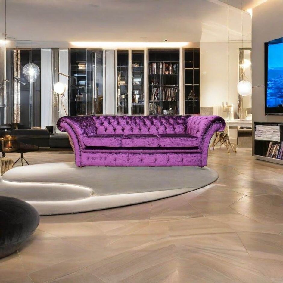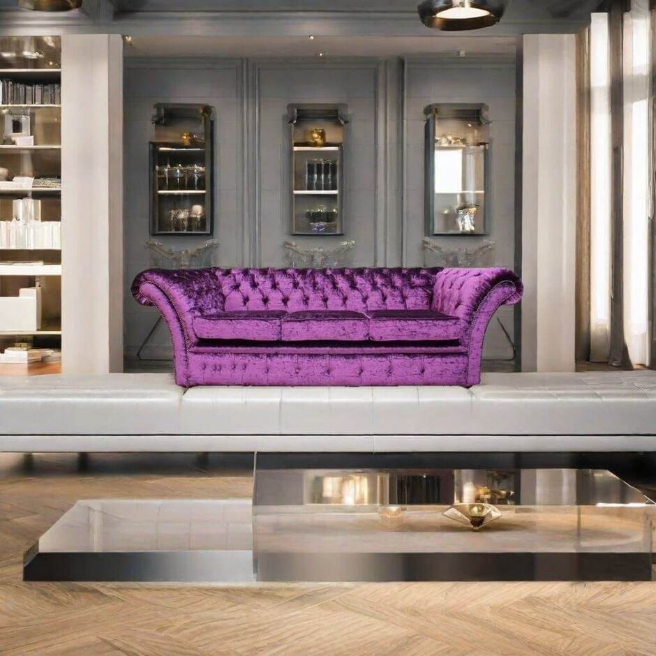 Chesterfield Grosvenor Purple 3 Seater Sofa Settee Boutique Crush Velvet Fabric