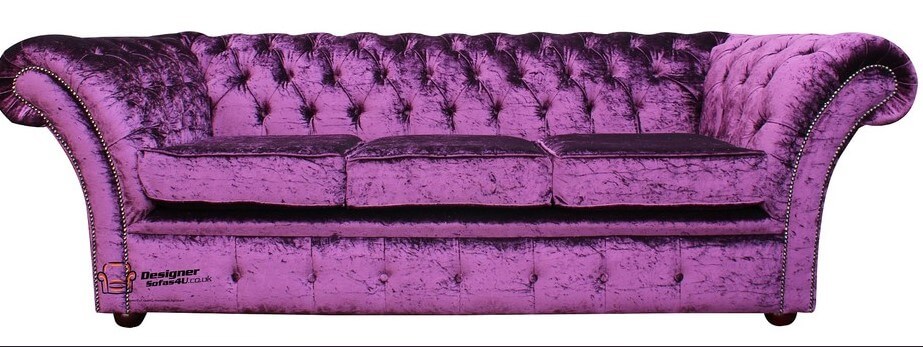 Chesterfield Cambridge Purple 3 Seater Sofa Settee Boutique Crush Velvet Fabric