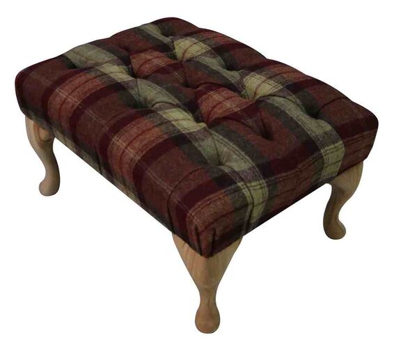 Chesterfield Queen Anne Footstool Skye Almandine Check Wool