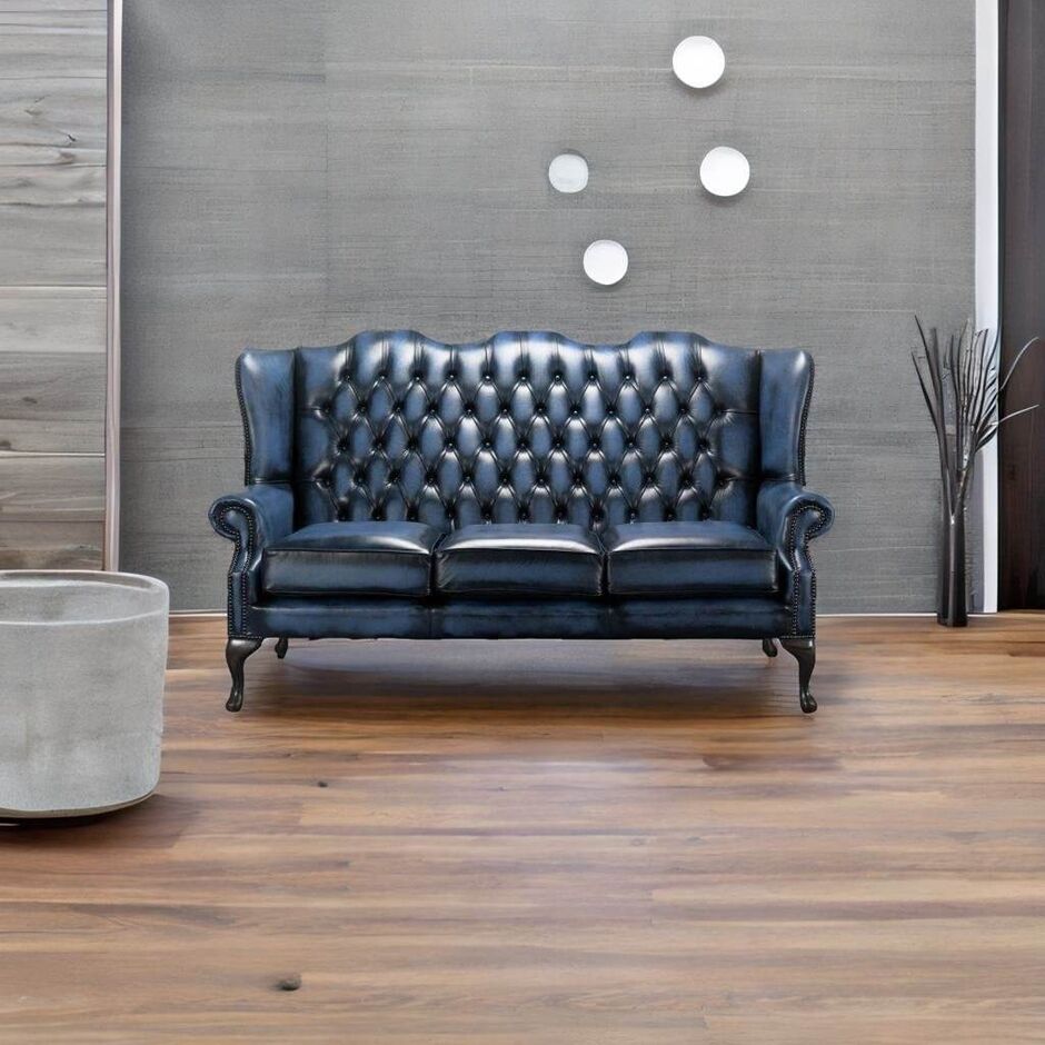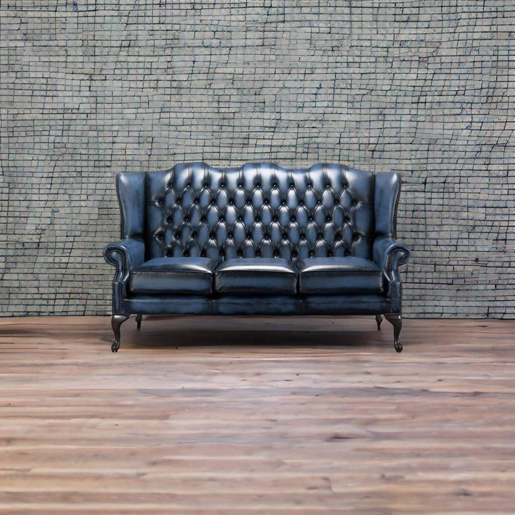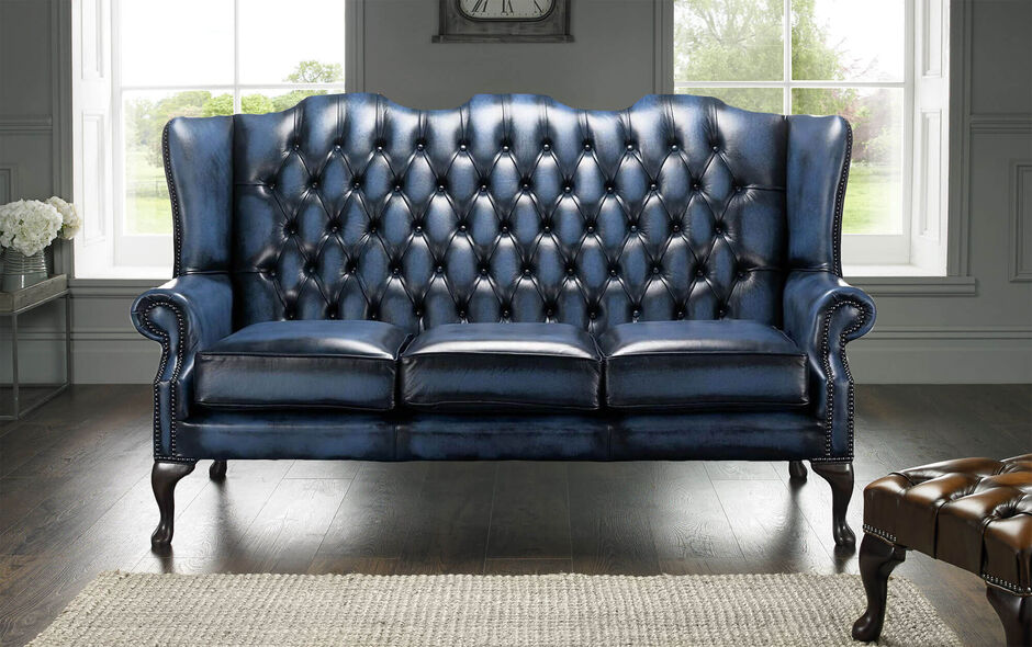 Chesterfield High Back Mallory 3 Seater Sofa Antique Blue Leather