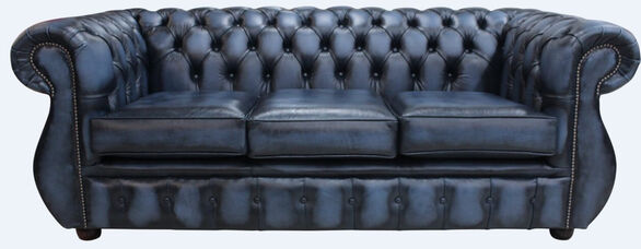 Chesterfield Kimberley 3 Seater Sofa Settee Antique Blue Leather      Chesterfield Kimberley Club Chair Antique Blue Leather