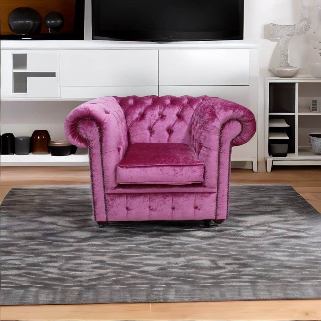 Chesterfield Low Back Club ArmChair Boutique Rose Pink Velvet Fabric