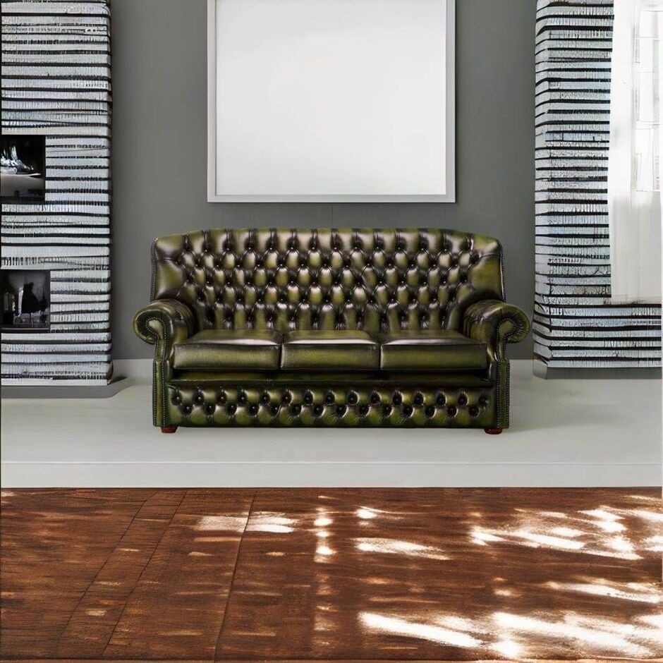 Chesterfield Monks 3 Seater Sofa Antique Green Leather