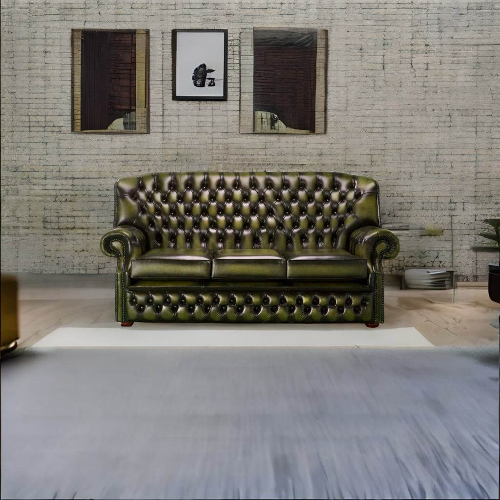 Chesterfield Monks 3 Seater Sofa Antique Olive Green Leather