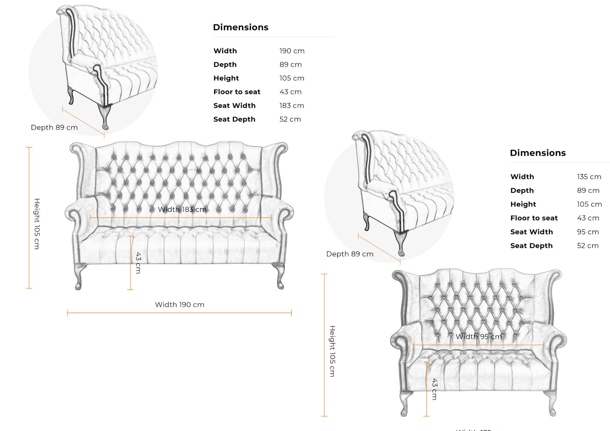 3 Seat Queen Anne Chair Dimensions : H 105cm x D 89cm x W 190cm apprx.