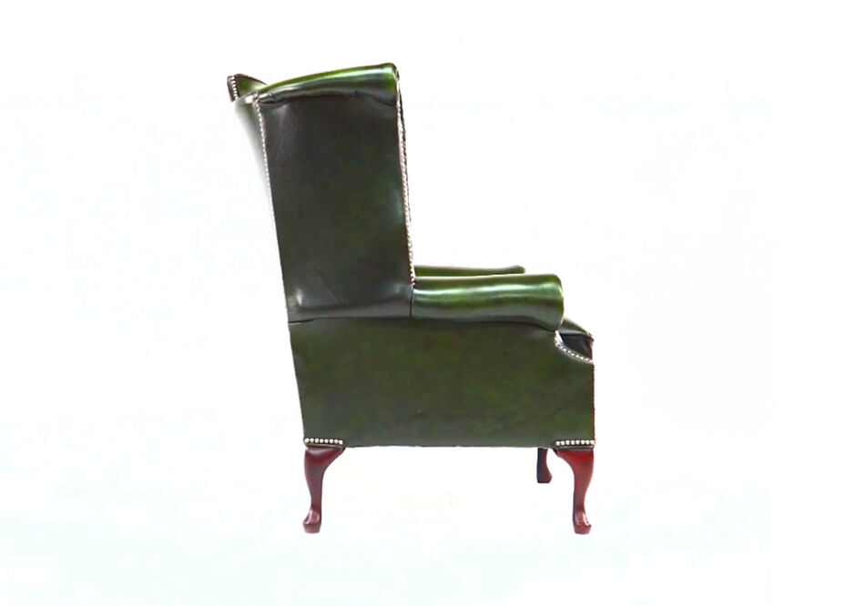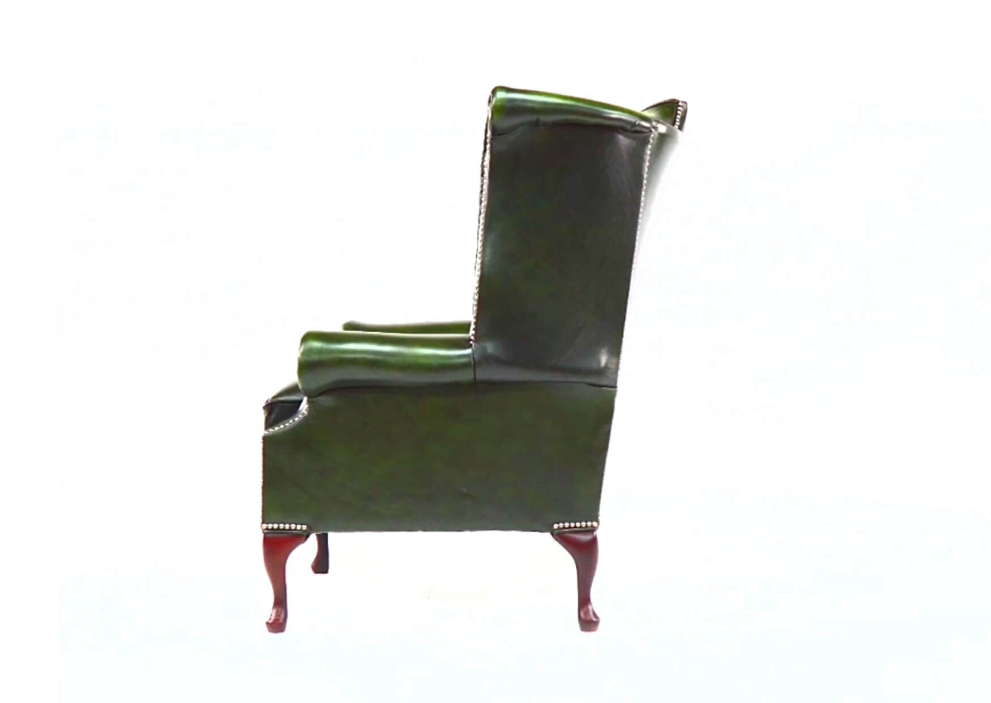 Chesterfield Newby High Back Wing Chair UK Manufactured Antique Green Leather