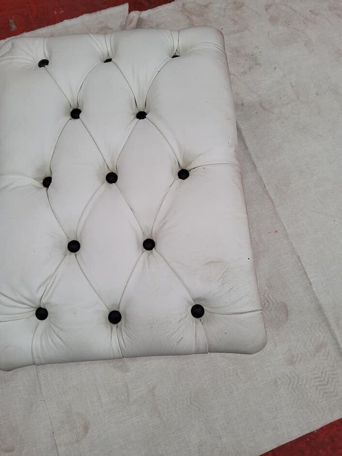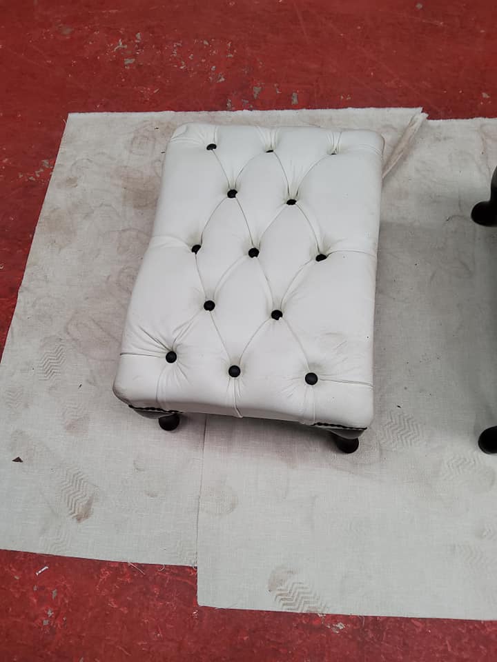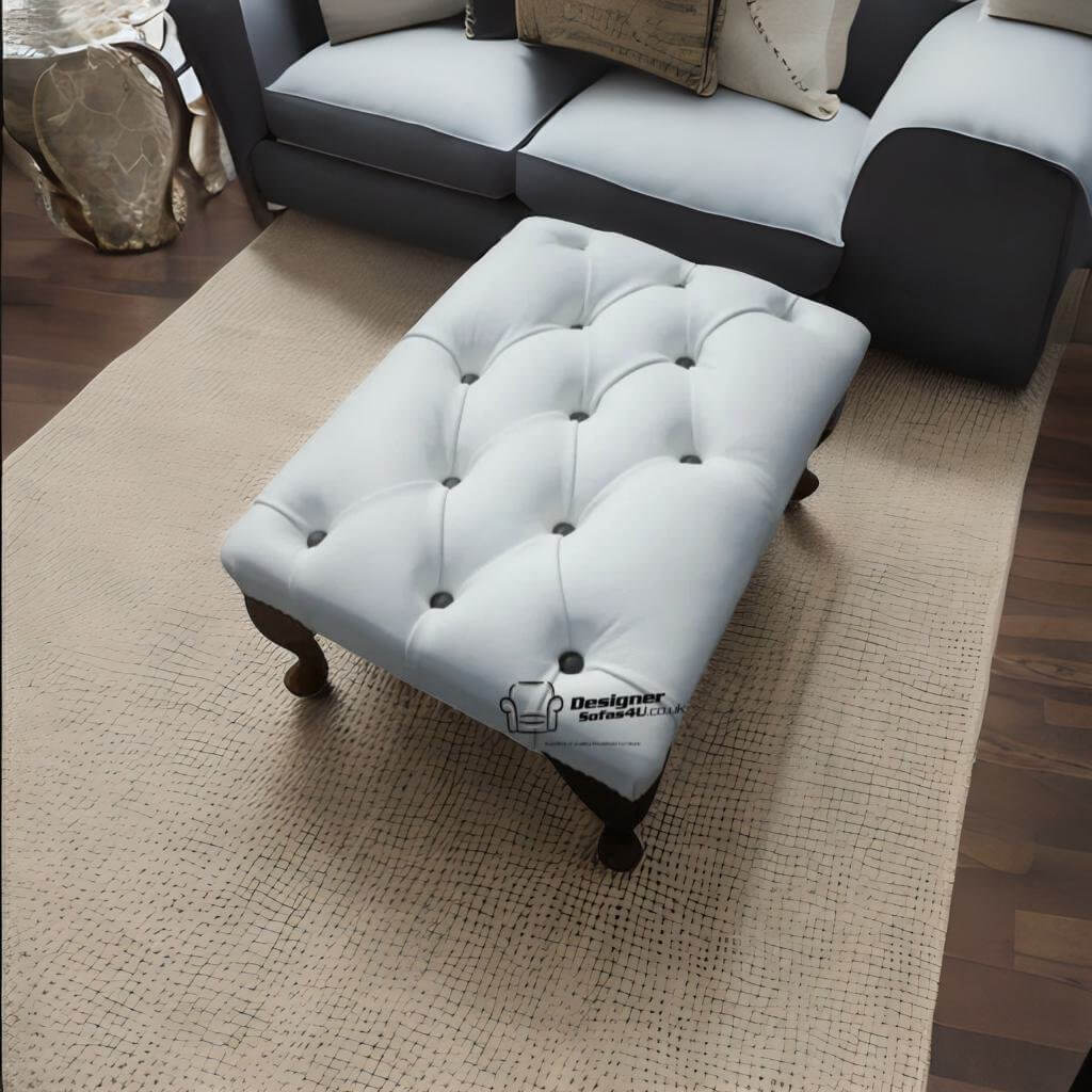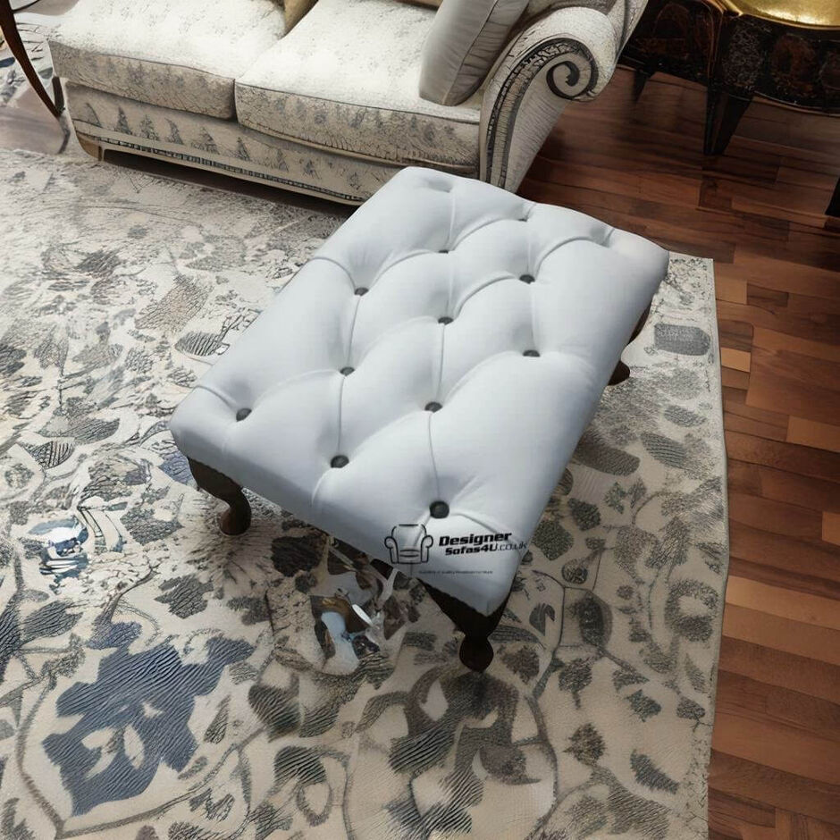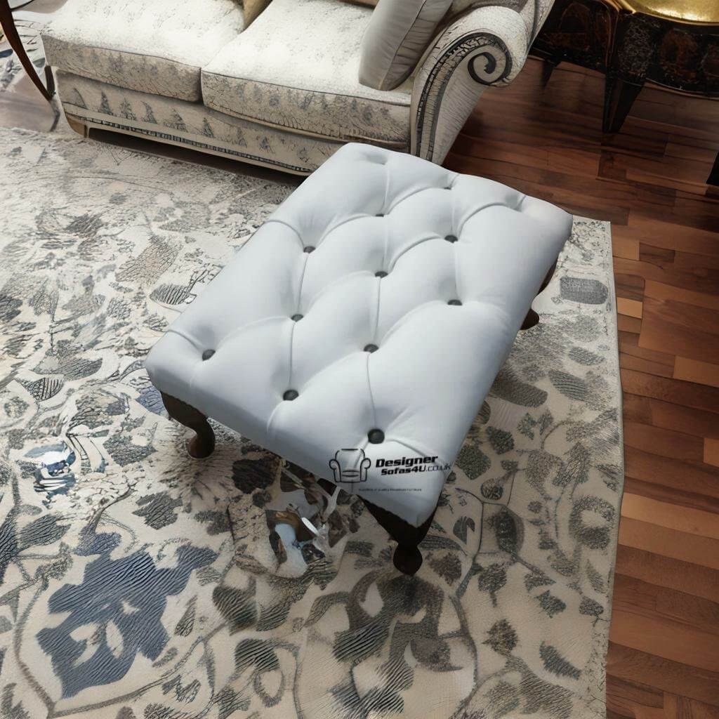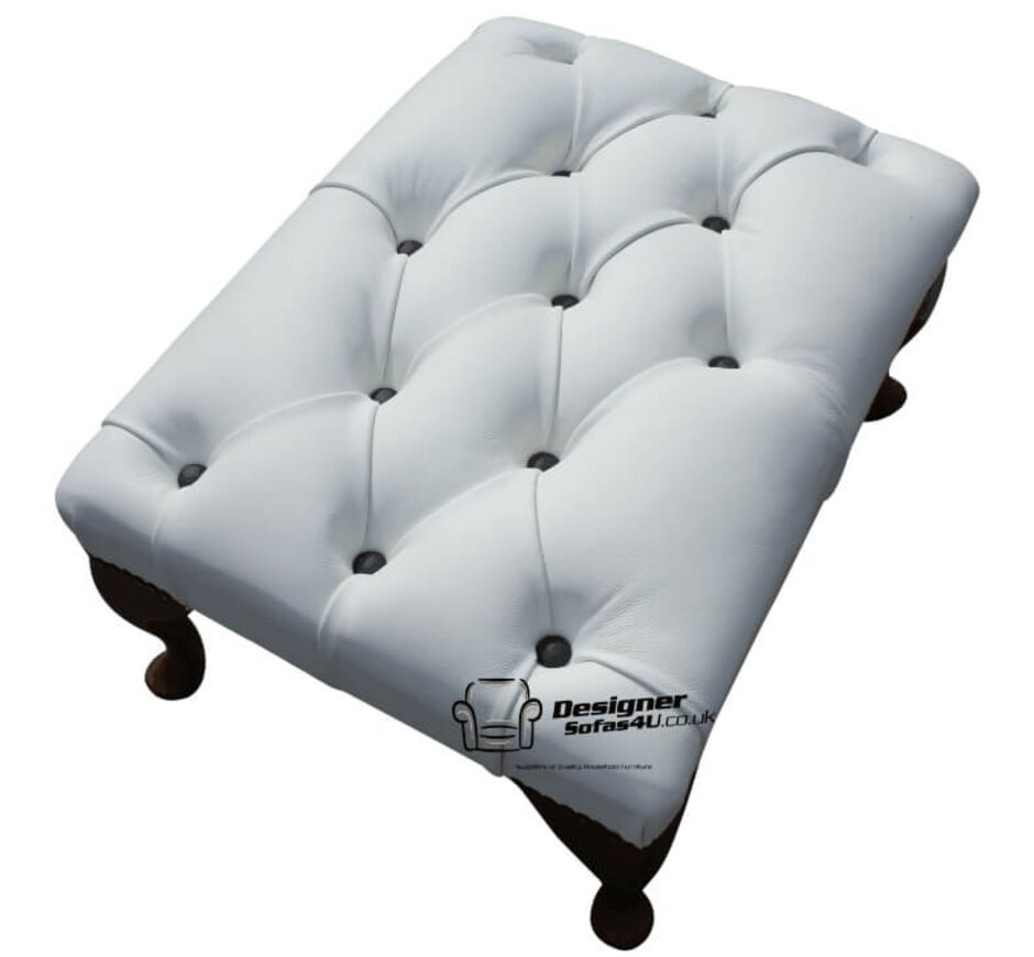 Chesterfield Queen Anne Footstool UK Manufactured White Real Leather With Black Buttons