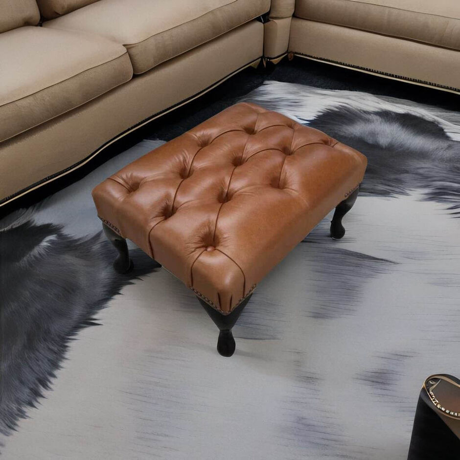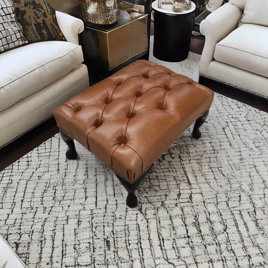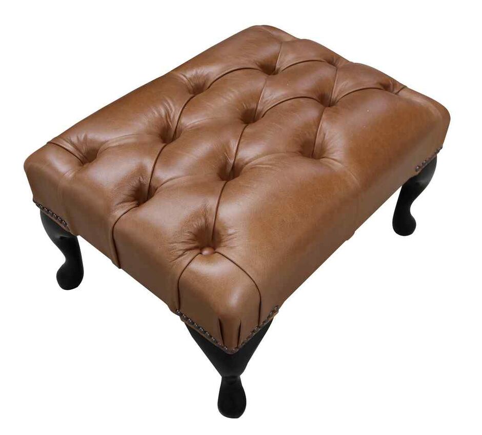 Chesterfield Queen Anne Footstool UK Manufactured Old English Bruciato Leather