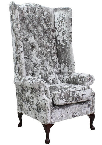 Our classic Winged High-Back Armchair with exposed hardwood leg detail. A very popular look in the Queen Anne style. High Back Chesterfield Queen Anne Wing Chair In Fabric.