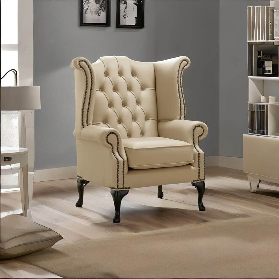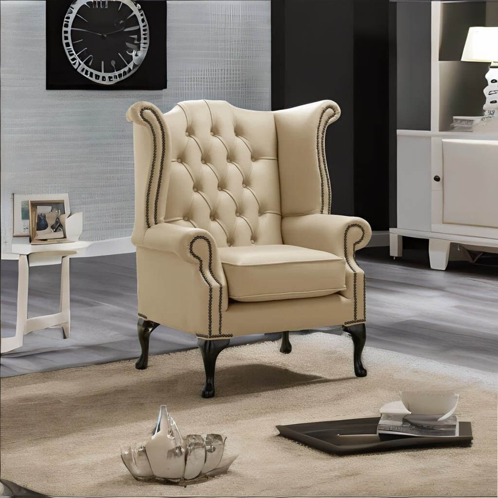 Chesterfield Queen Anne High Back Wing Chair Shelly Almond Leather