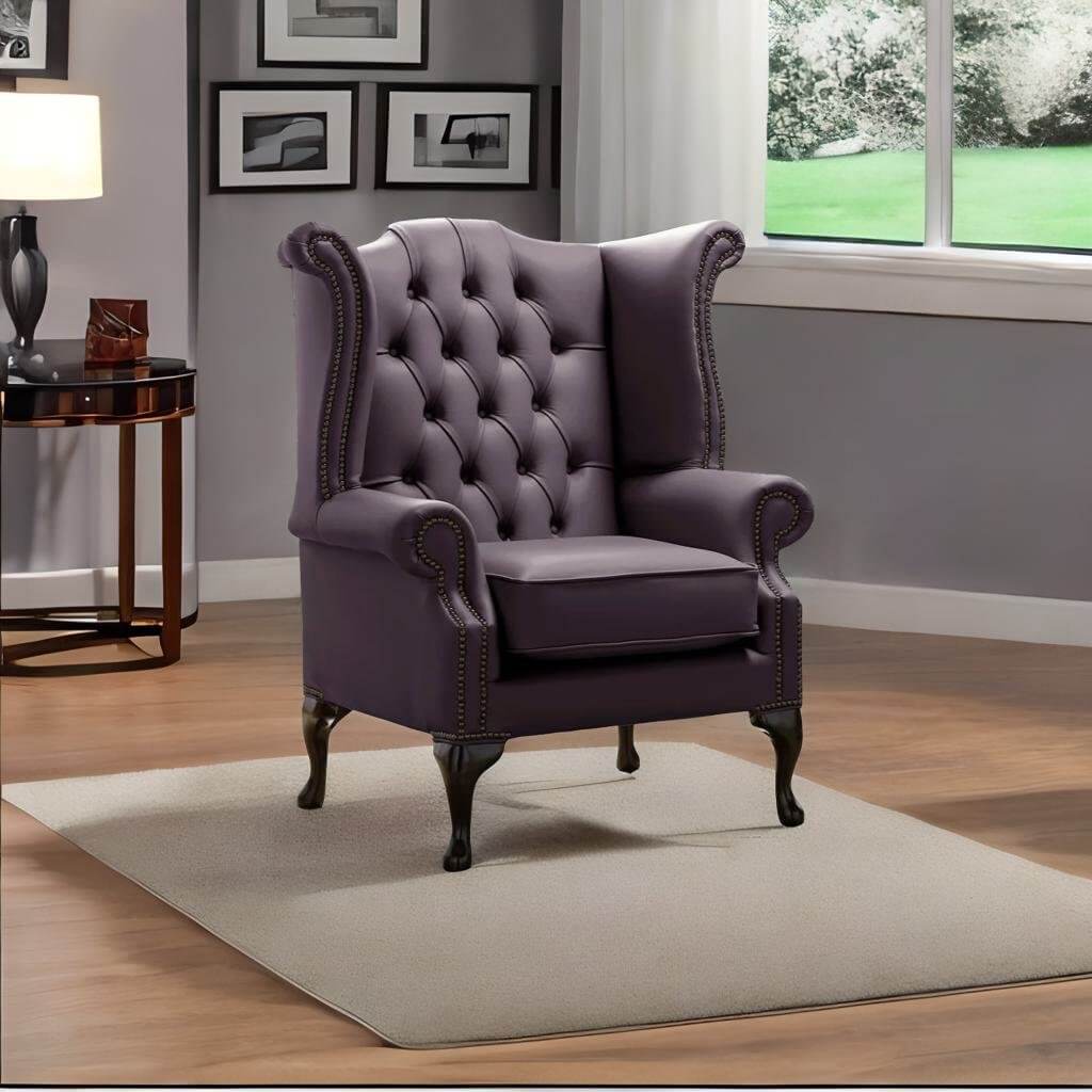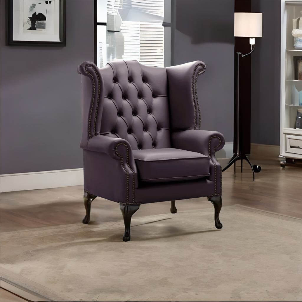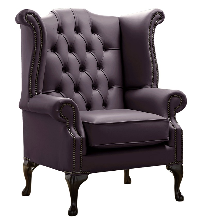 Chesterfield Queen Anne Leather Wing Chair