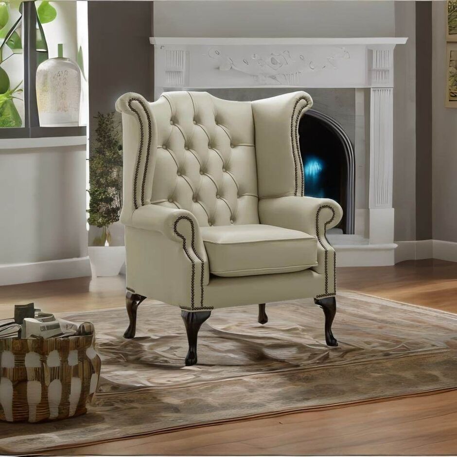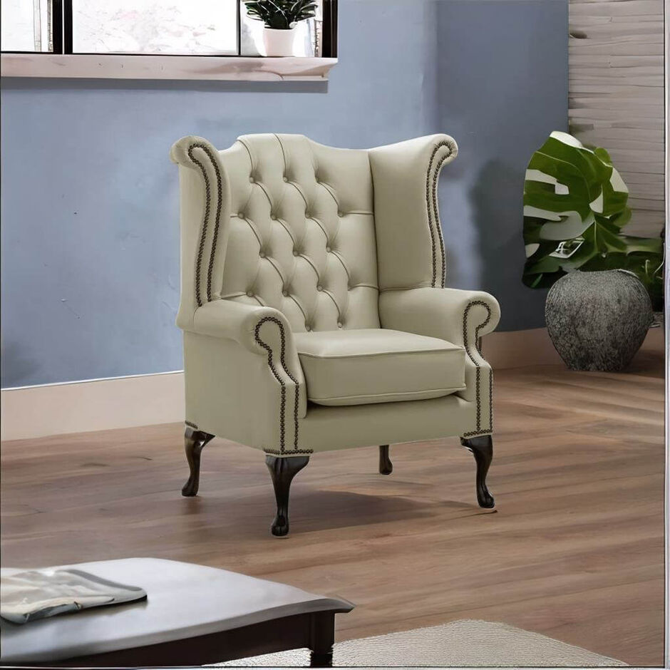 Chesterfield Queen Anne High Back Wing Chair Shelly Beige Leather