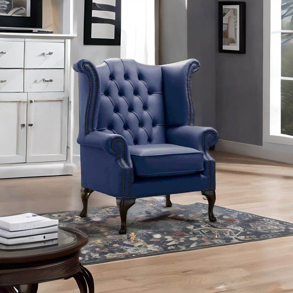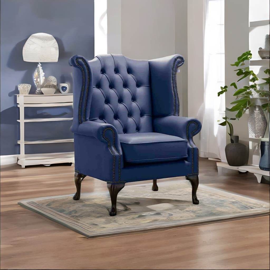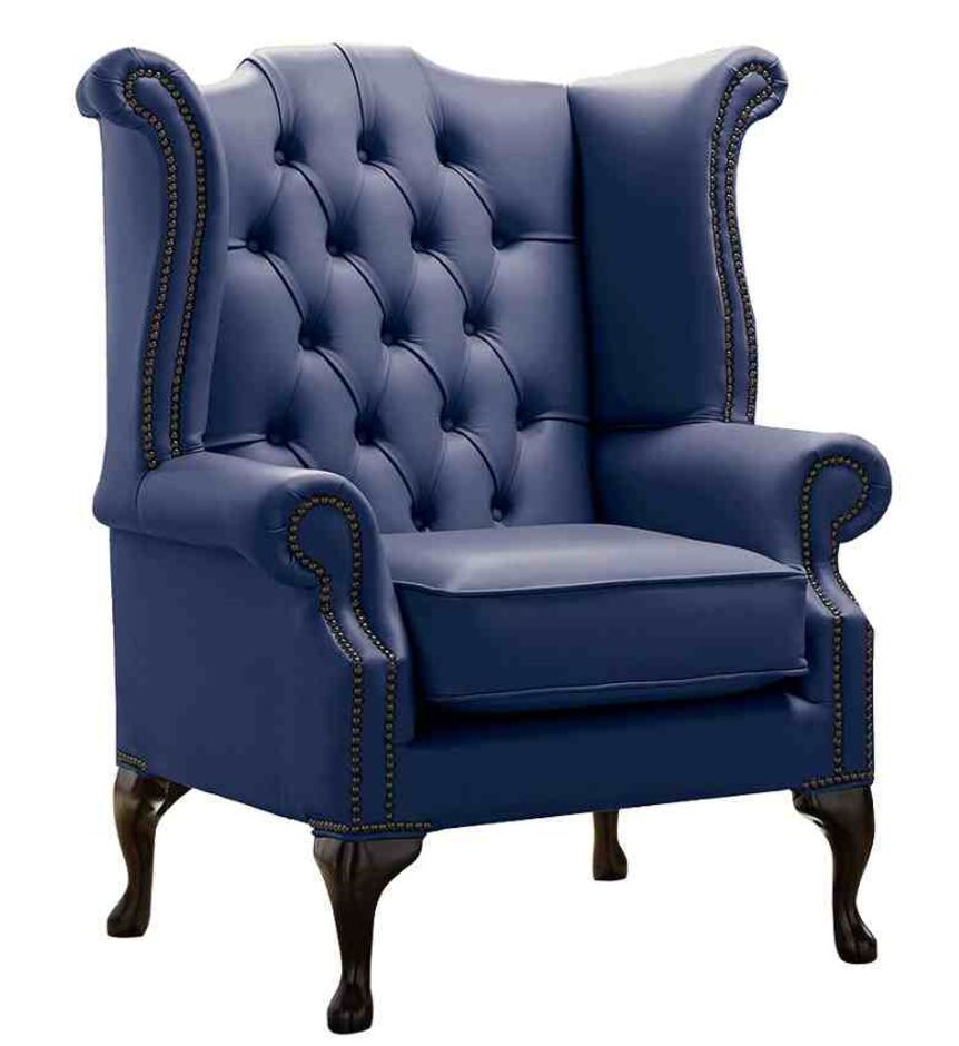 Chesterfield Queen Anne High Back Wing Chair Shelly Bilberry Real Leather