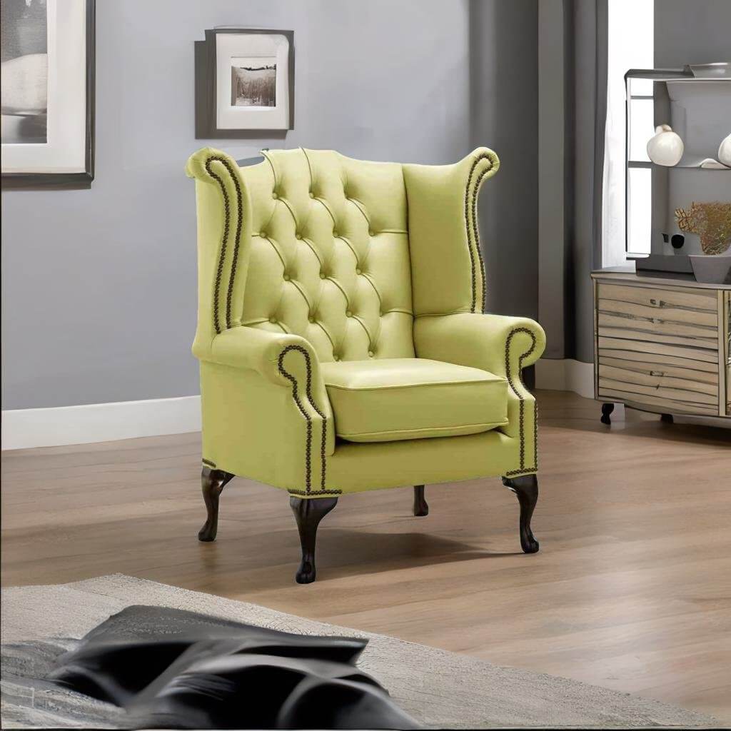 Chesterfield Queen Anne Leather Wing Chair