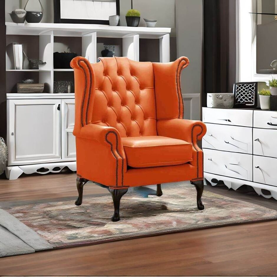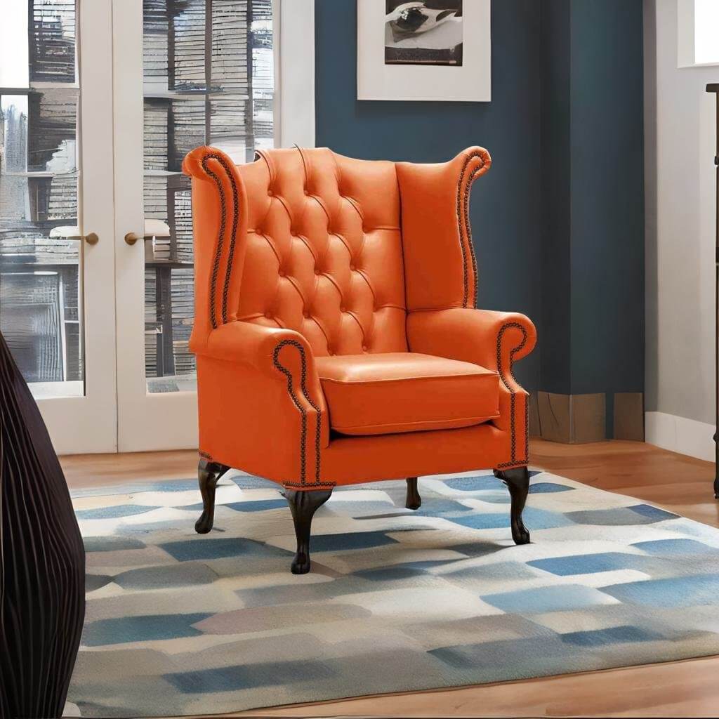 Chesterfield Queen Anne High Back Wing Chair Shelly Flame Red Leather
