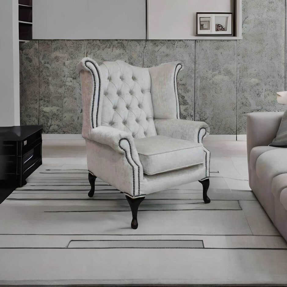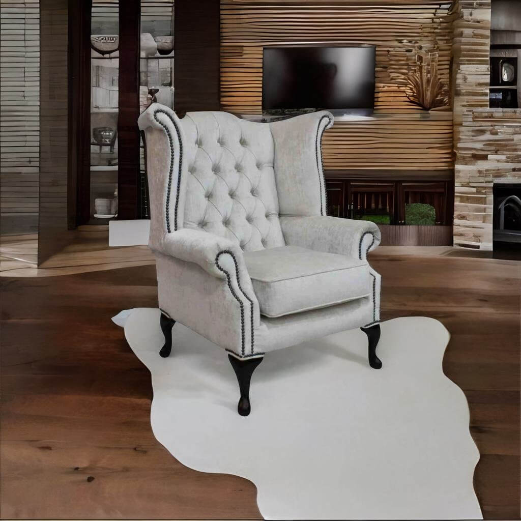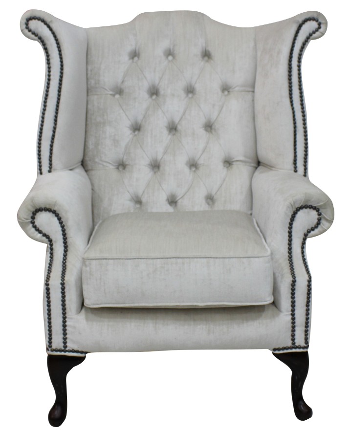 Our Winged High-Back Chesterfield Queen Anne Armchair with exposed hardwood leg detail. A very popular look in the Chesterfield style.