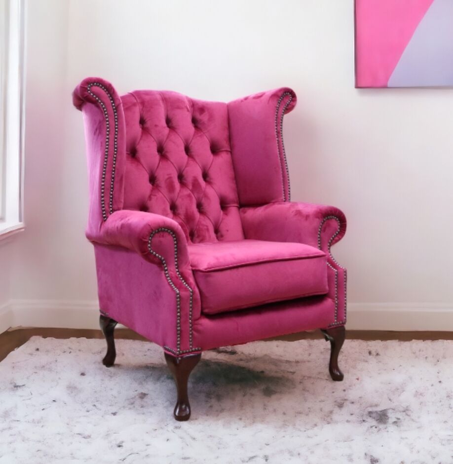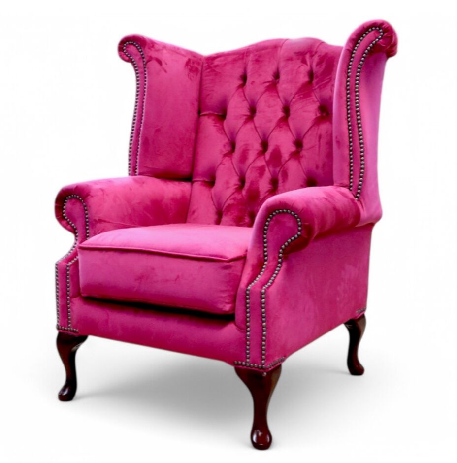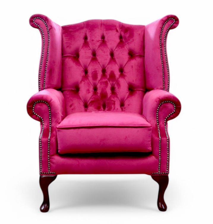 Our Winged High-Back Chesterfield Queen Anne Armchair with exposed hardwood leg detail. A very popular look in the Chesterfield style.