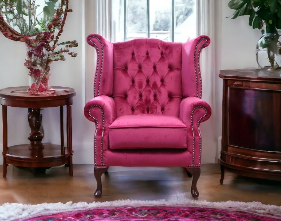 Chesterfield Queen Anne High Back Wing Chair Monaco Boysenberry Velvet