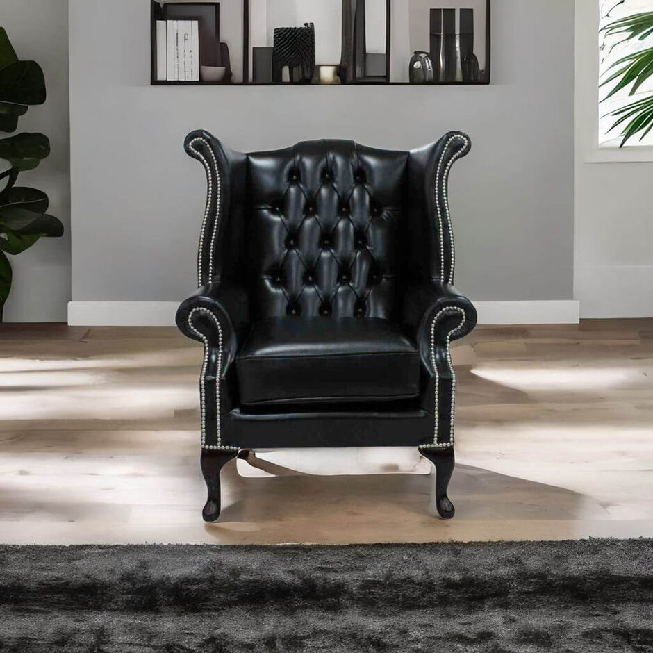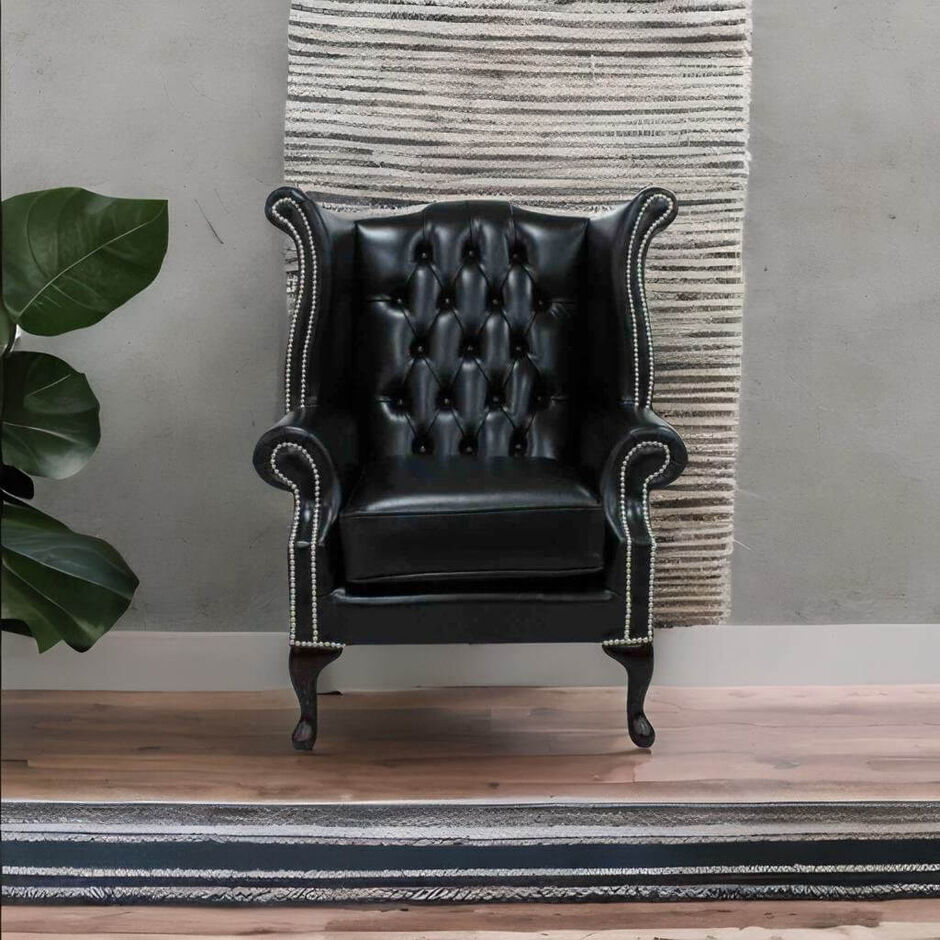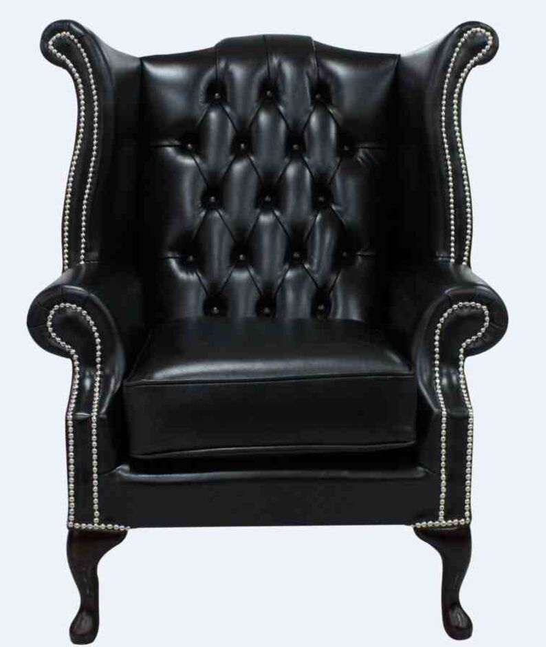 Chesterfield Queen Anne Wing Chair Old English Black Leather