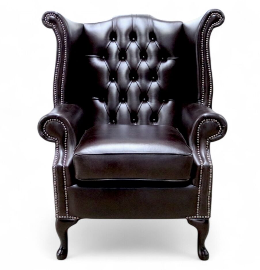 Chesterfield Queen Anne Wing Chair Old English Black Leather