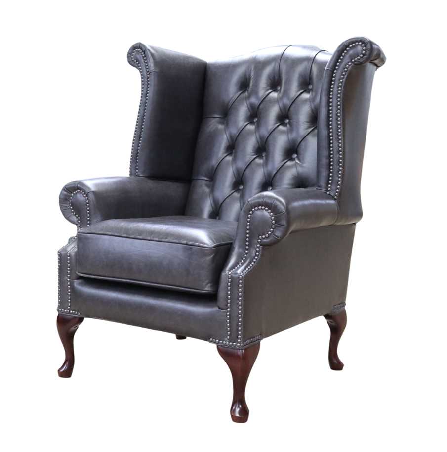 Chesterfield Queen Anne High Back Wing Chair Vele Huxley Leather