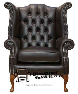 Our classic Winged High-Back Armchair with exposed hardwood leg detail. A very popular look in the Queen Anne style. High Back Chesterfield Queen Anne Wing Chair