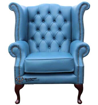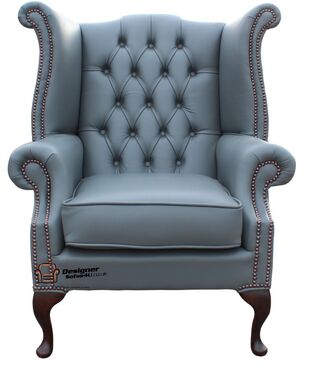 Chesterfield Queen Anne High Back Wing Chair Old English Placid Lake Blue Leather