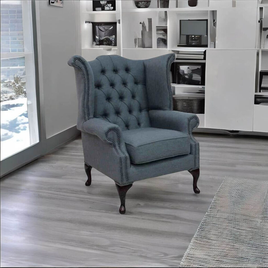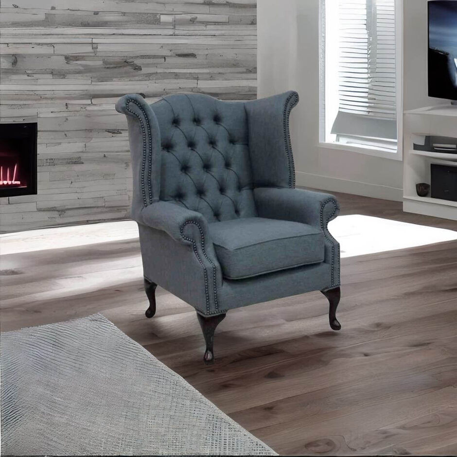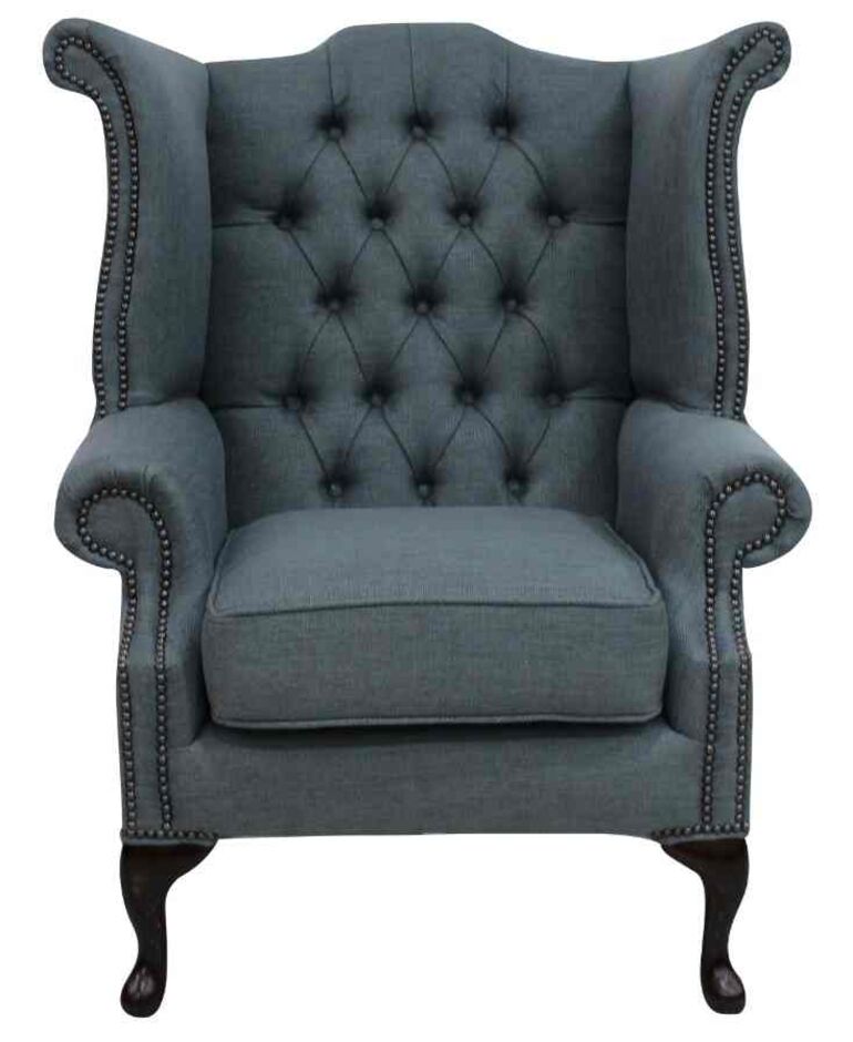 Chesterfield Queen Anne High Back Wing Chair Zoe Plain Granite Fabric