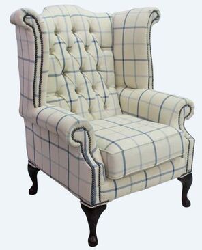 Our Winged High-Back Chesterfield Queen Anne Armchair with exposed hardwood leg detail. A very popular look in the Chesterfield style.