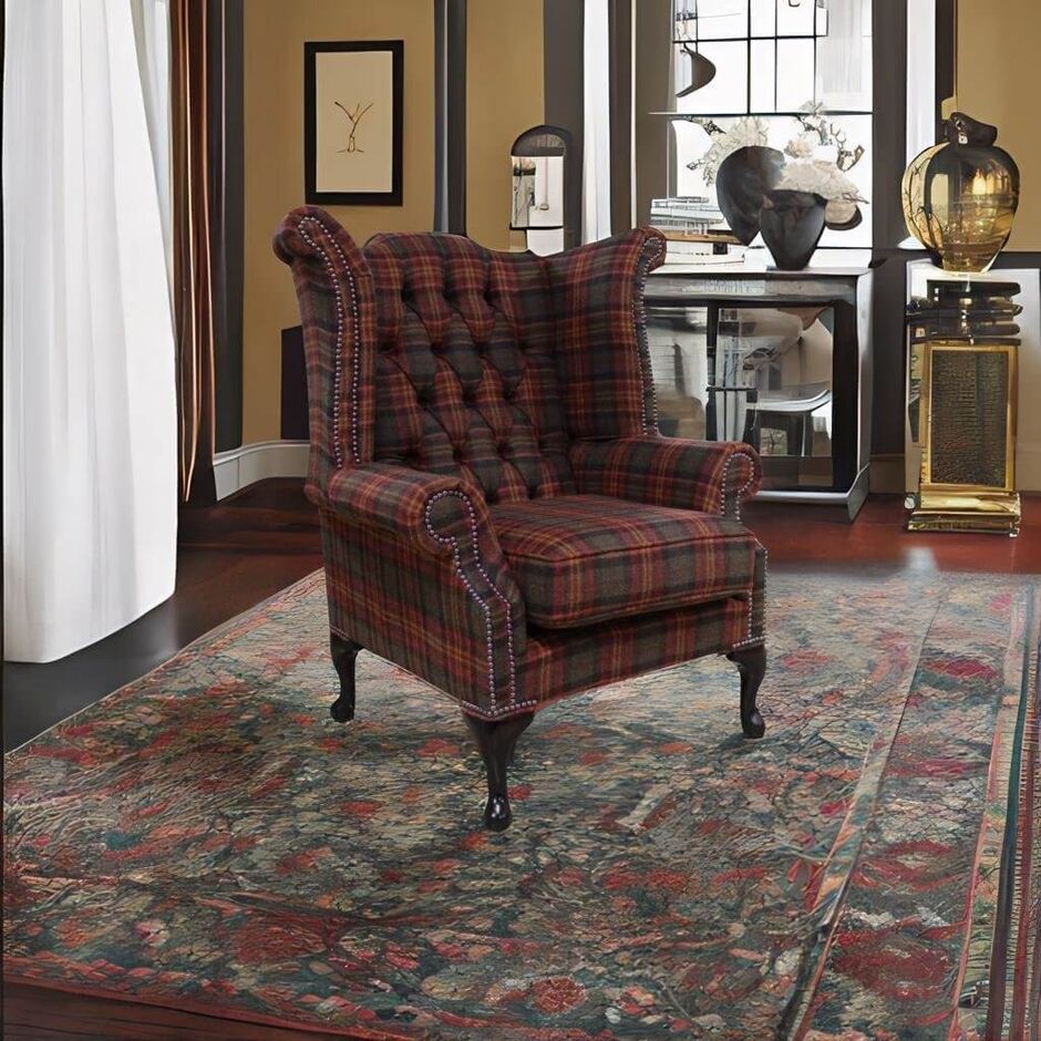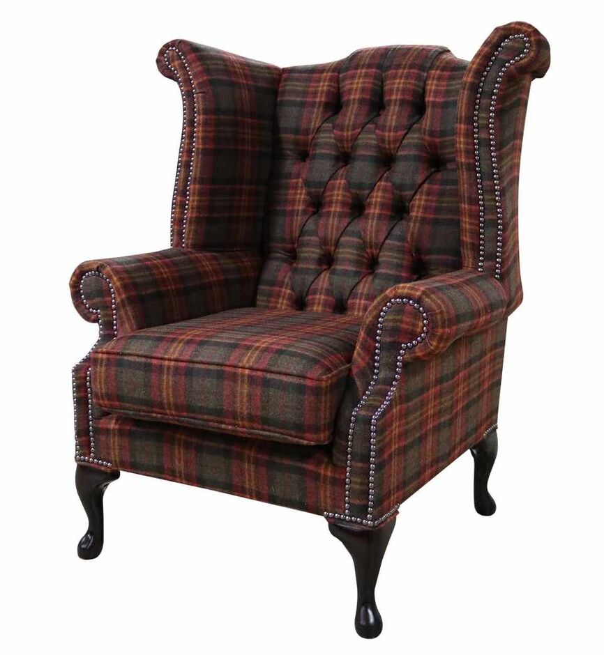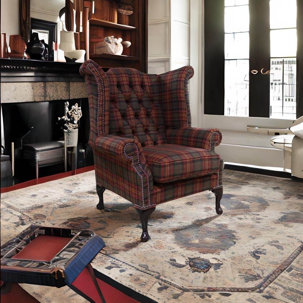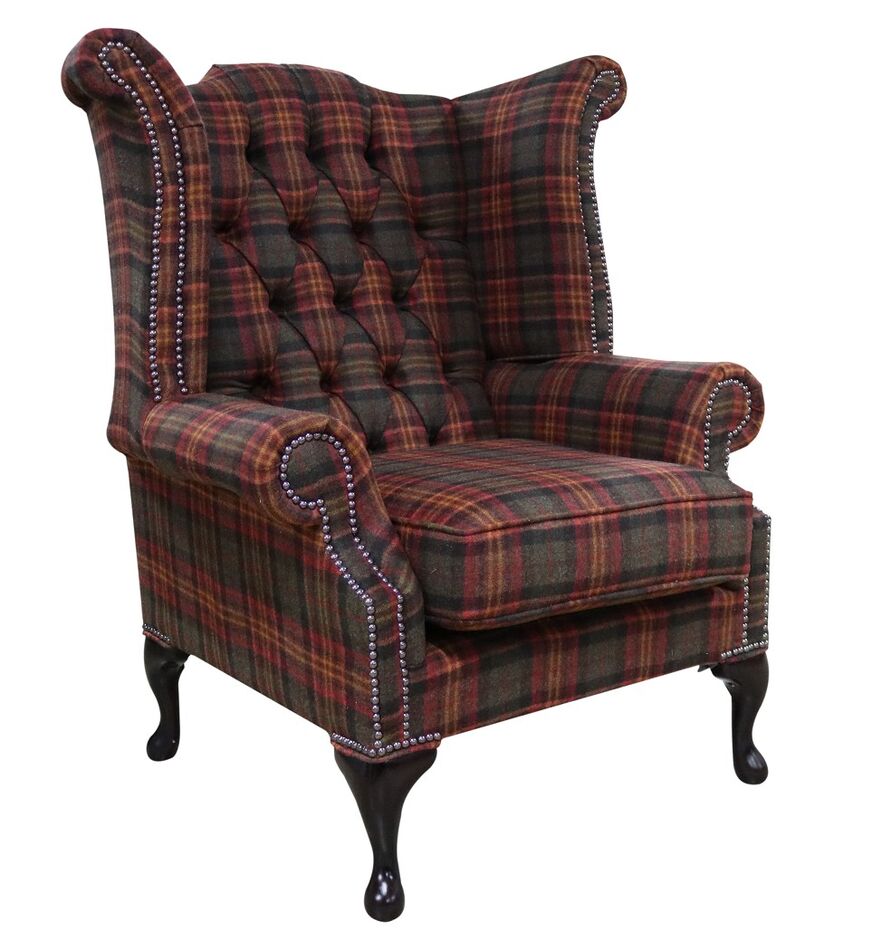 Chesterfield Queen Anne Wool Tweed Wingback Chair – Sandringham Mandarin Check