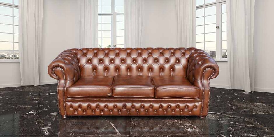 The Chesterfield Classic Sofa. The Chesterfield Leather Sofa with it's unique Low Back Style, Deep Buttoned Arms and Back complemented with a Buttoned Front Border. The Scroll Fronted arms on the Chesterfield Leather Sofa are attractively embellished with lines of individual stud nails. An undoubted winner in any room from the cottage to the boardroom. A classic of its kind ;Traditional Vintage British Style.