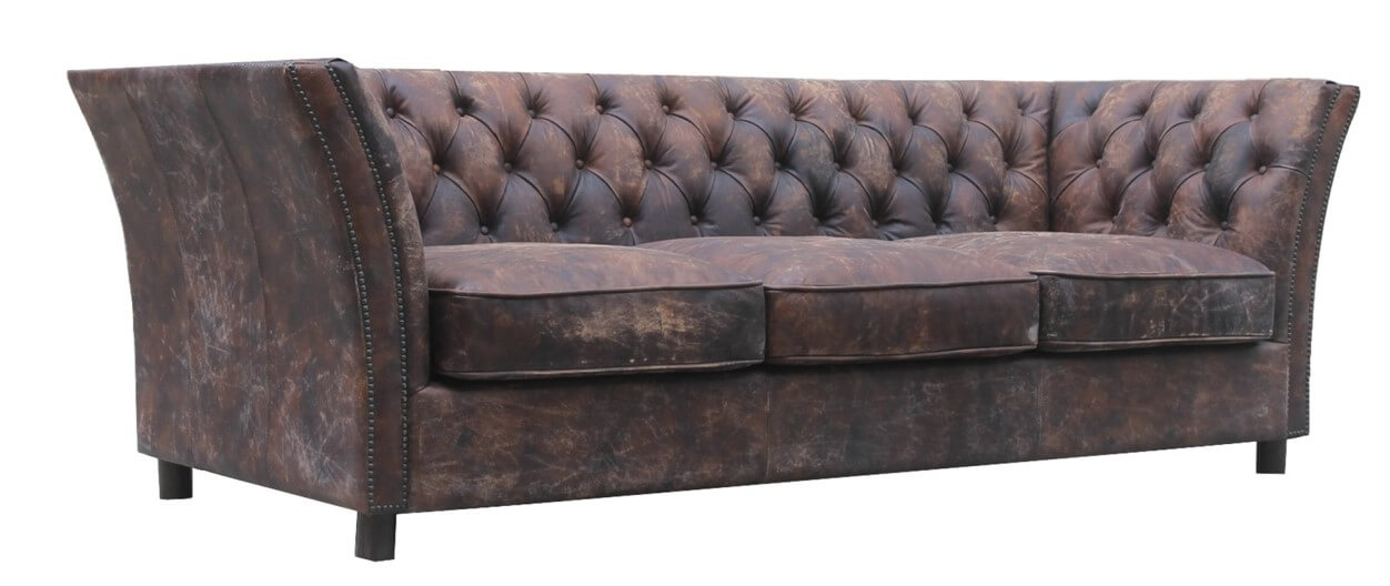 Chesterfield Kimono 3 Seater Vintage Distressed Leather Sofa