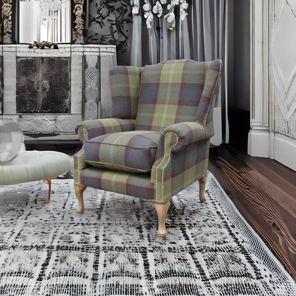 Chesterfield Saxon Mallory High Back Wing Chair Balmoral Pistachio Check P&S Fabric