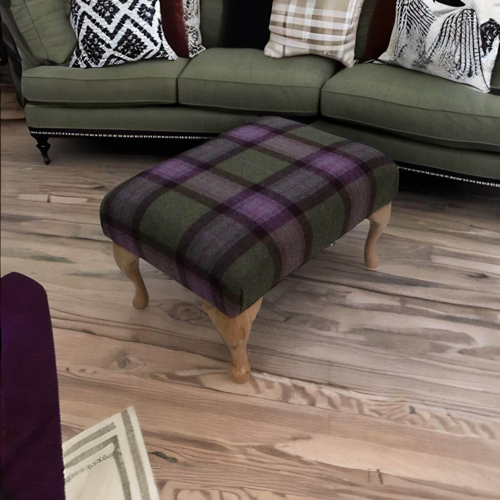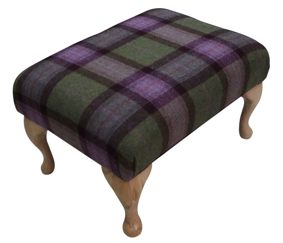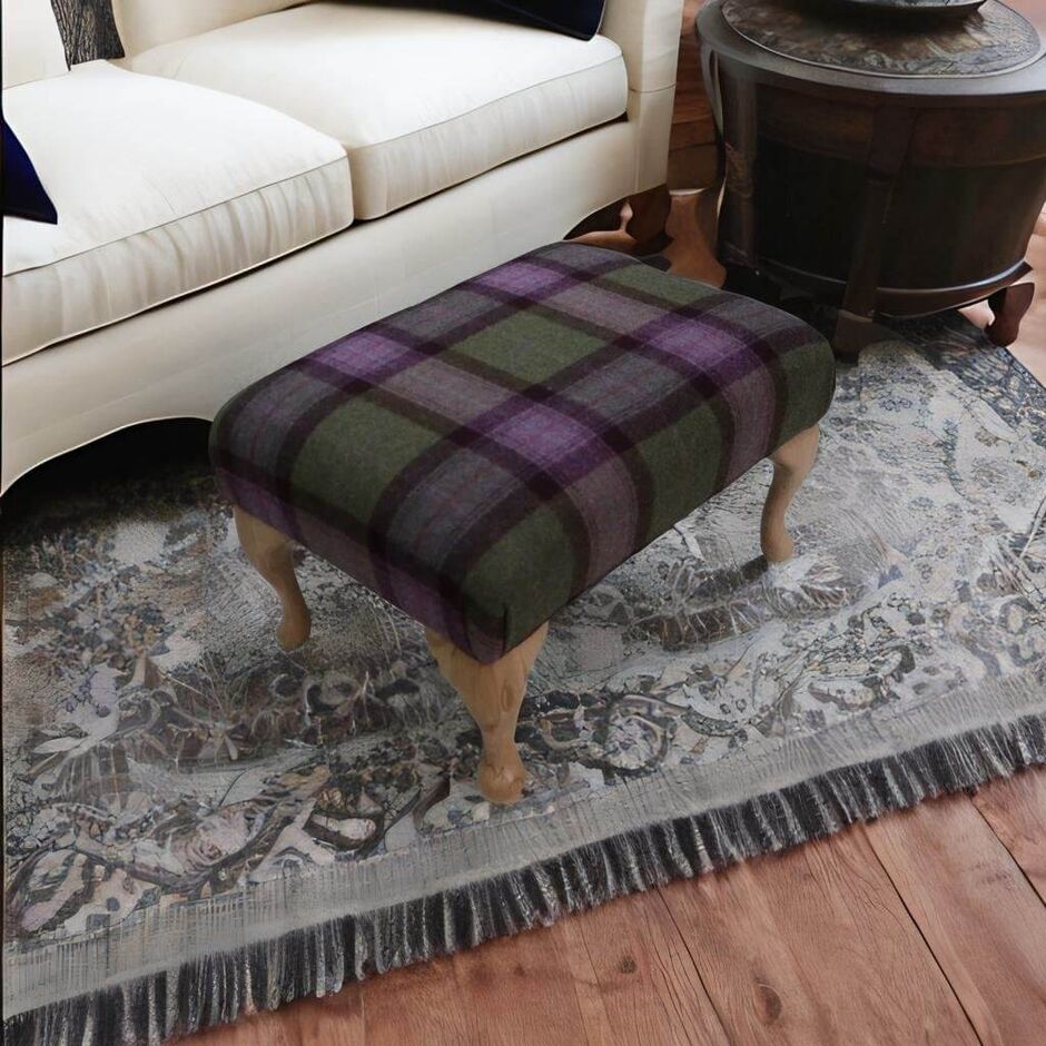 Chesterfield Queen Anne Footstool Skye Almandine Check Wool