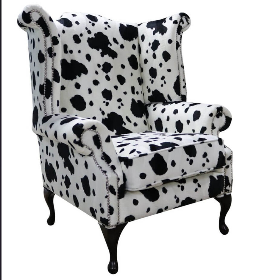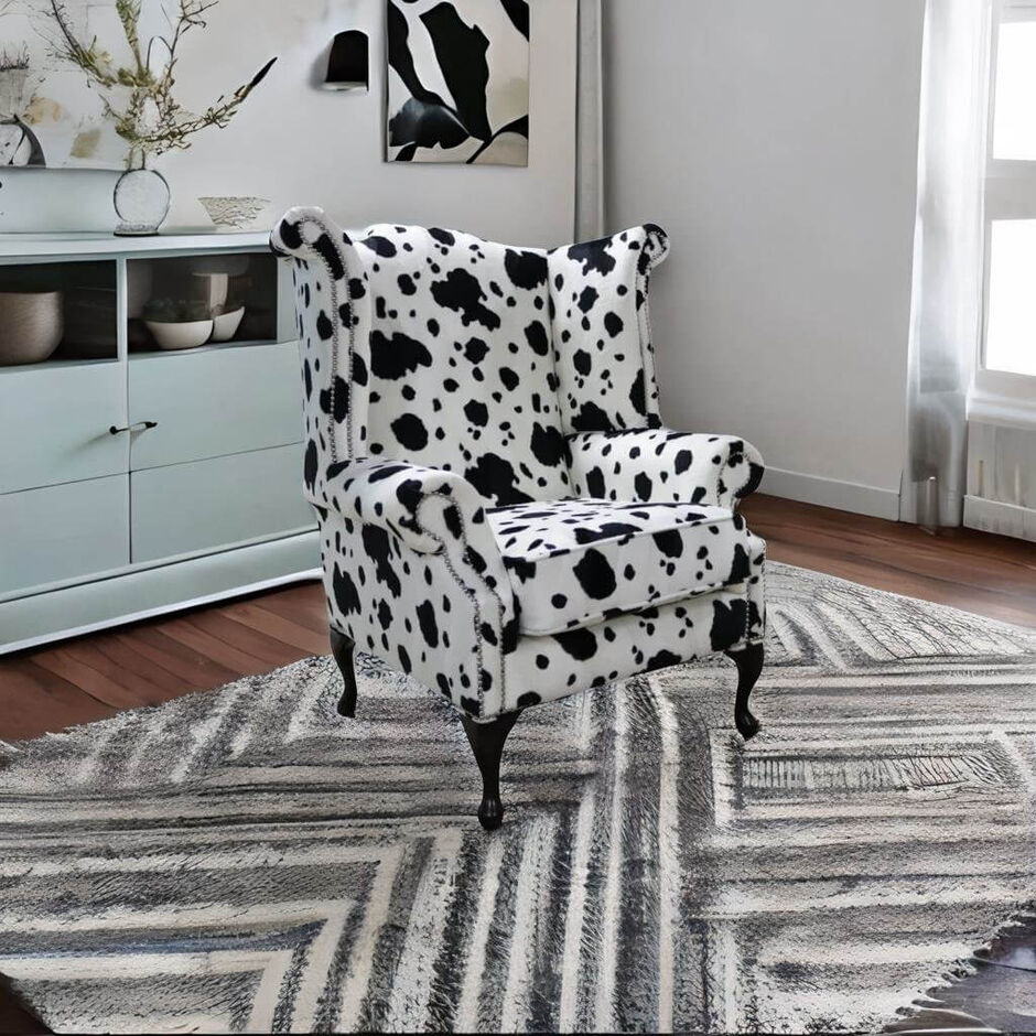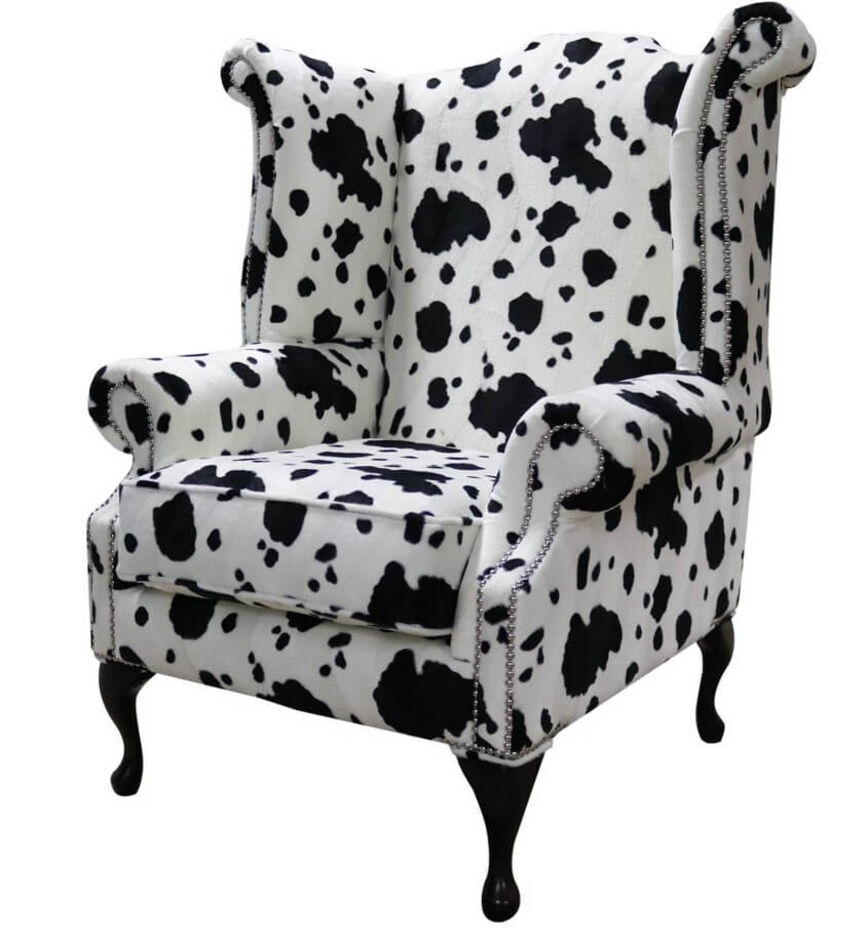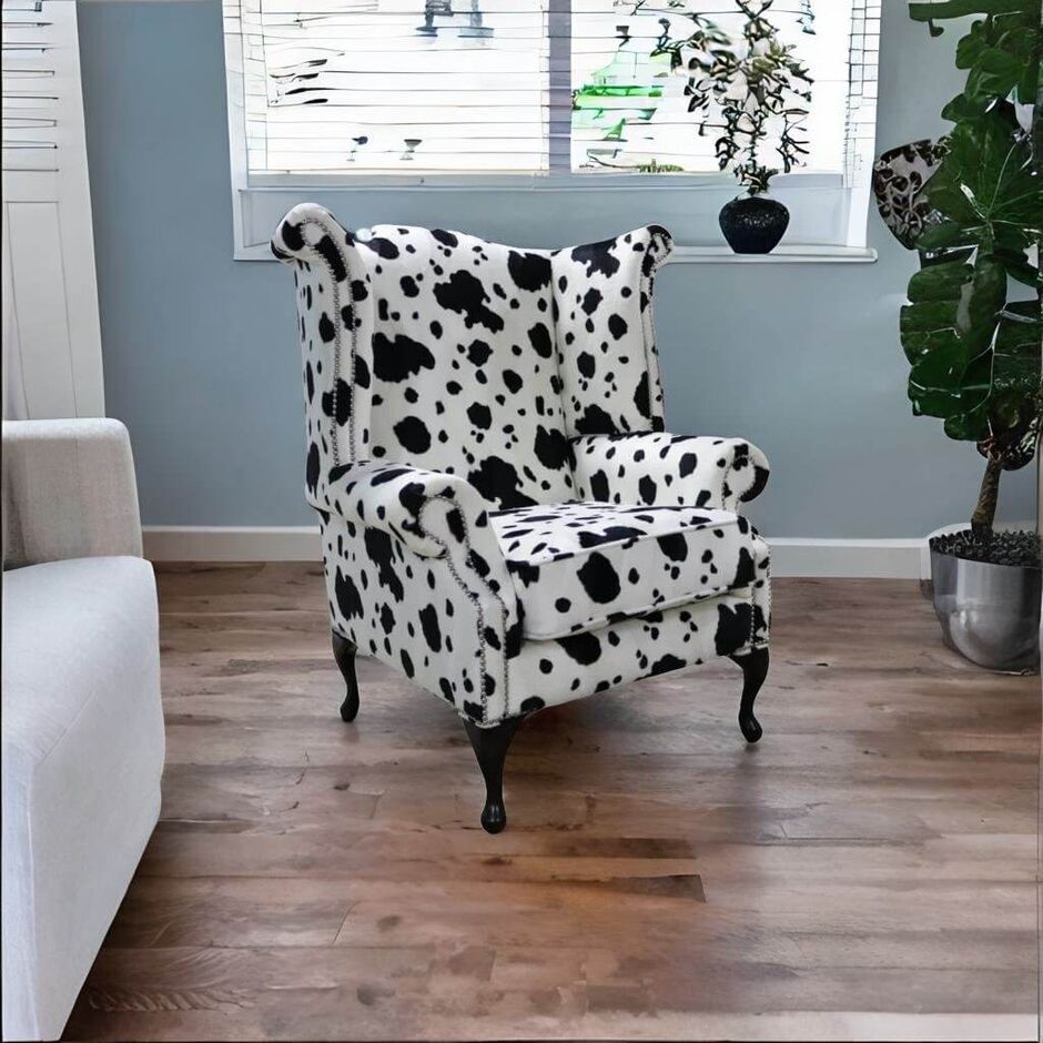 Chesterfield Saxon Queen Anne High Back Wing Chair Black Cow Animal Print