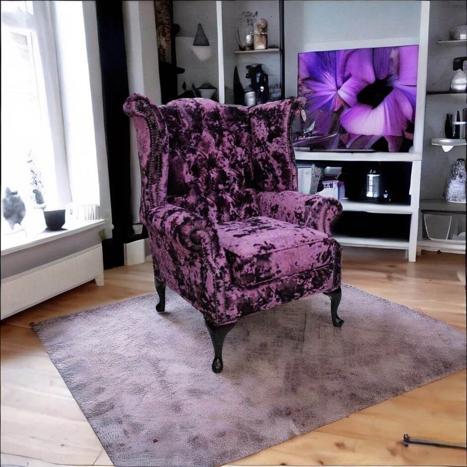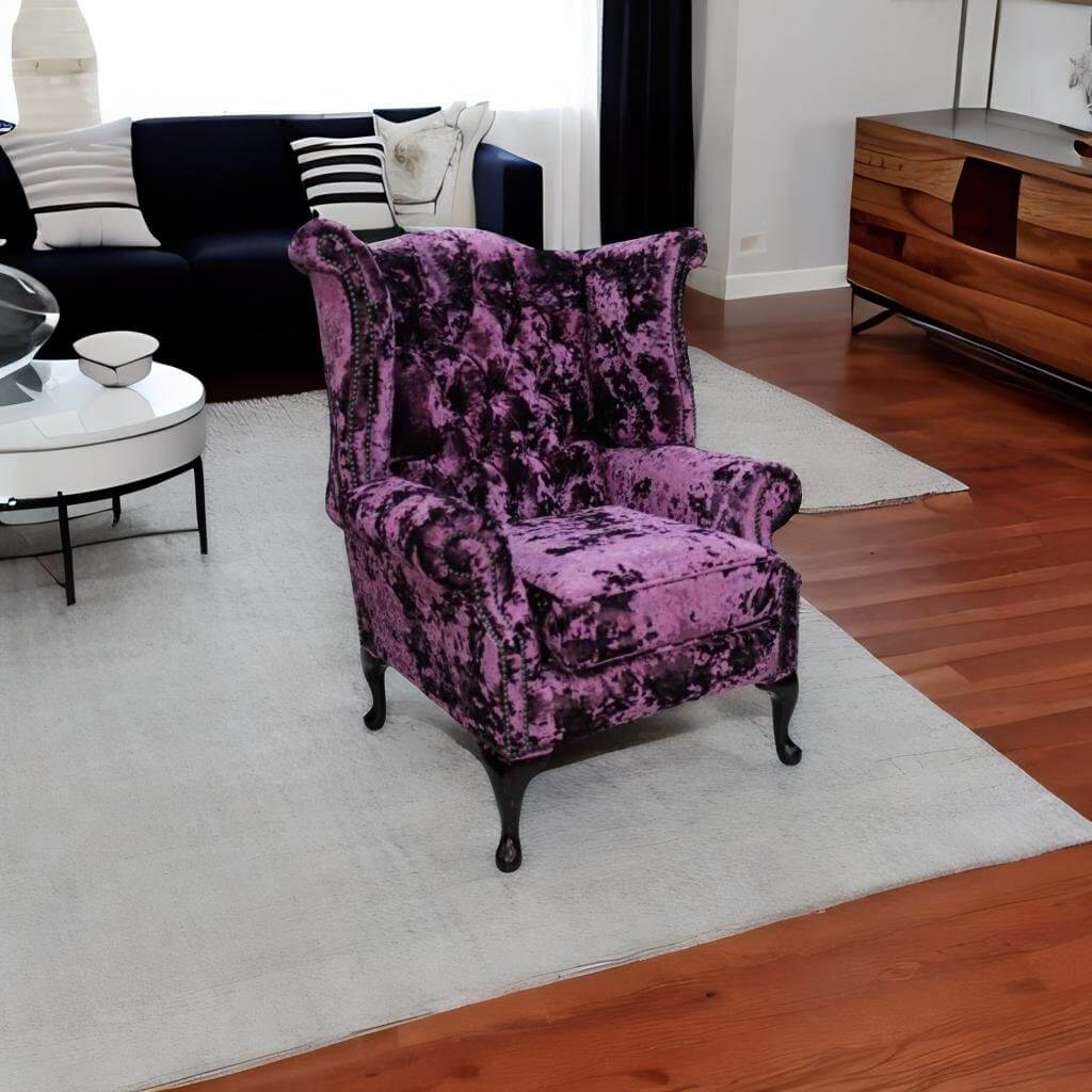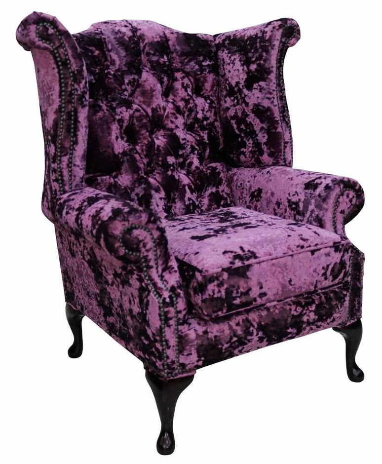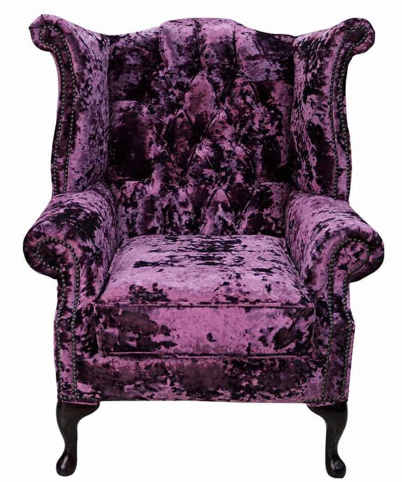 Chesterfield Velvet Queen Anne High Back Wing Chair Lustro Amethyst Purple