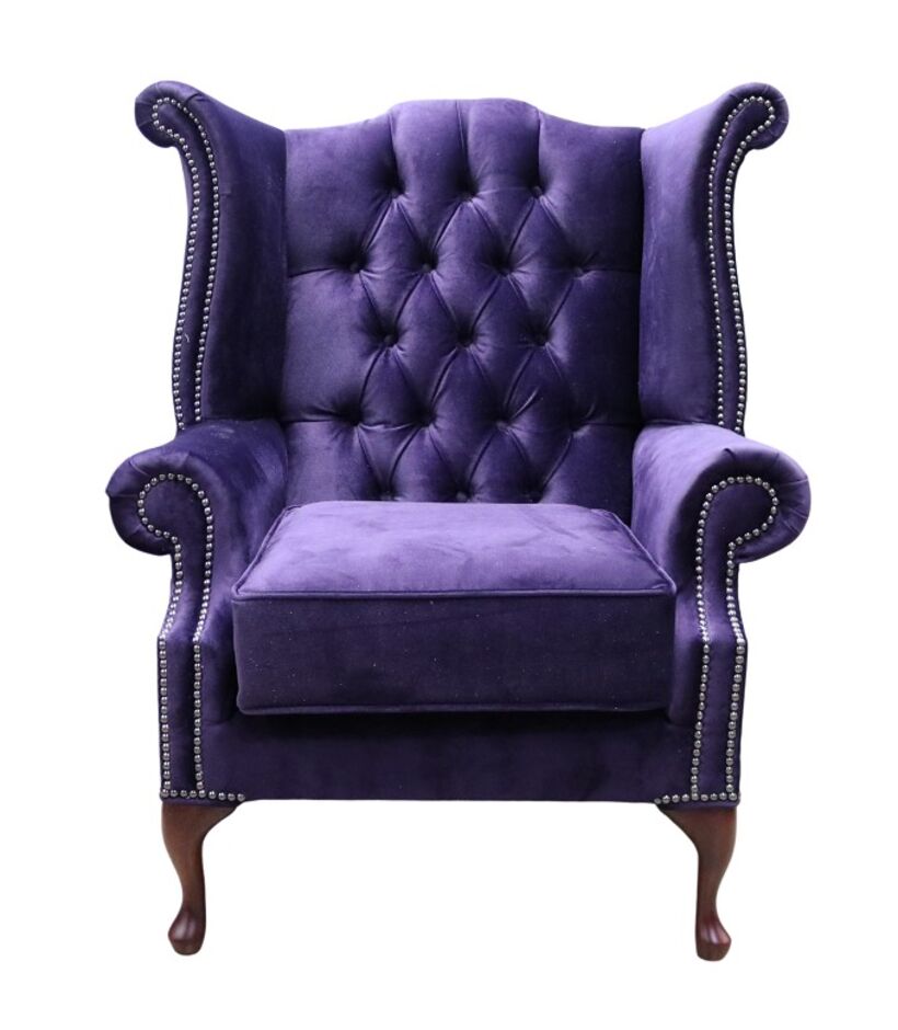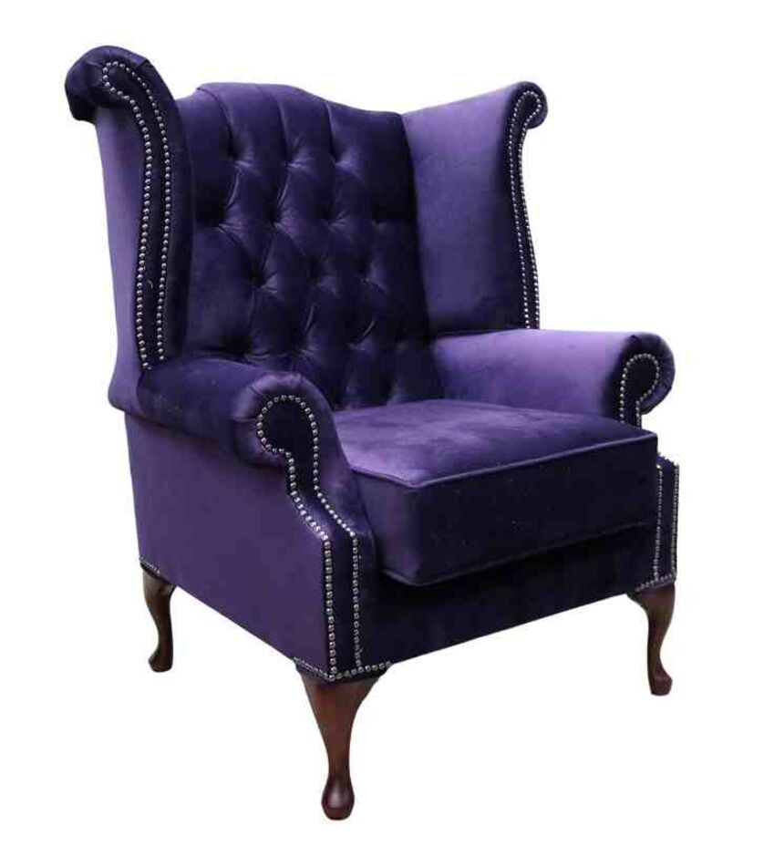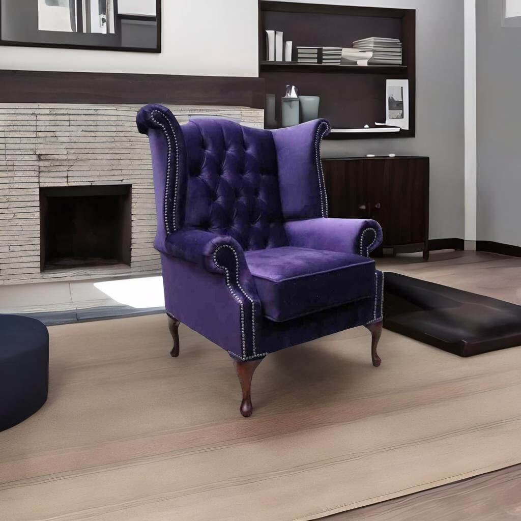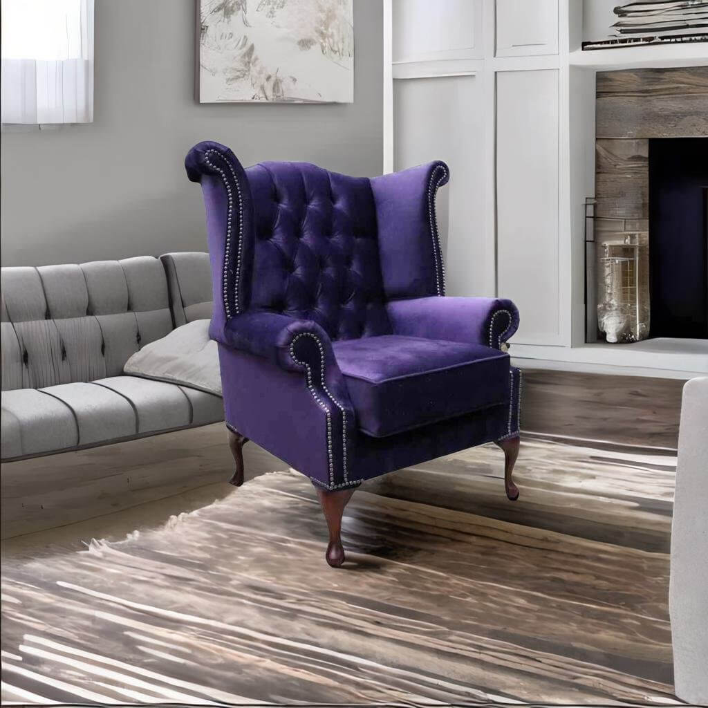 Chesterfield Velvet Queen Anne Wing Chair Amethyst Purple Velvet