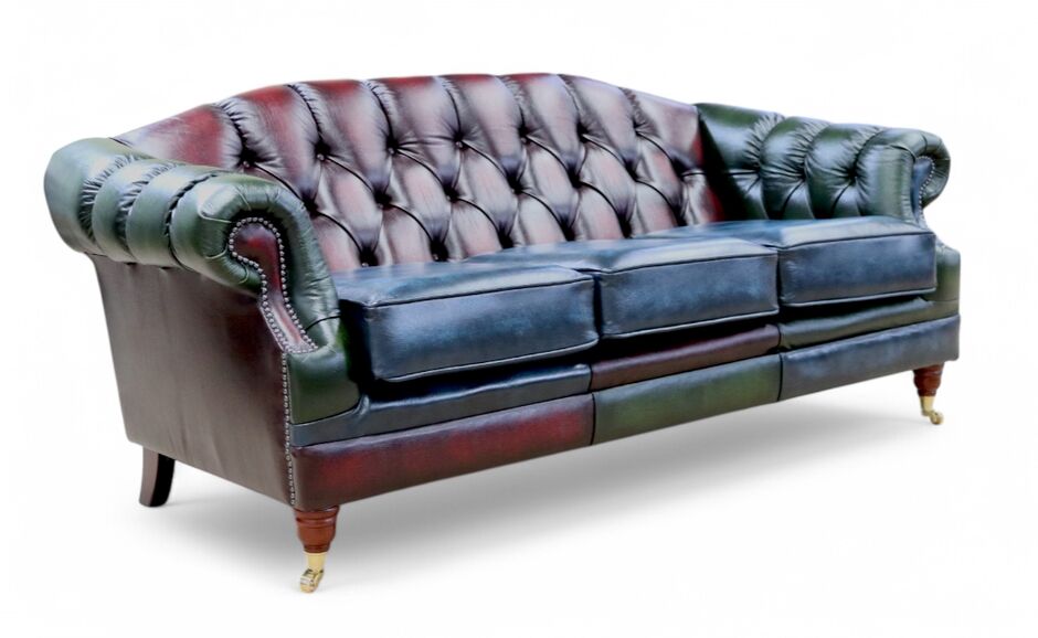 The Victoria Collection is available in 1,2 and 3 Seater Options. The Victoria Leather Sofa with it's unique Low Sides and High Back Style. The Scroll Fronted arms on the Chesterfield Leather Sofa are attractively embellished with lines of individual stud nails. An undoubted winner in any room from the cottage to the boardroom. A classic of its kind ;Traditional Vintage British Style.