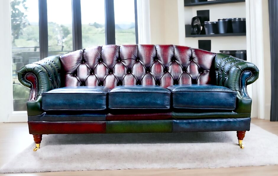 Chesterfield Victoria 3 Seater Leather Sofa Settee Antique Patchwork Leather