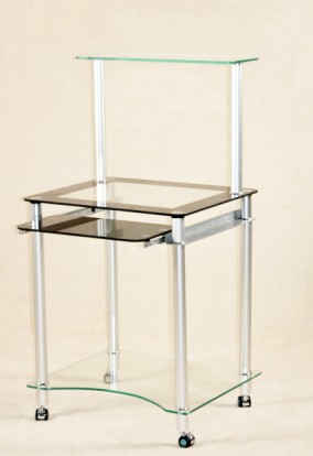 If space is at a premium, then the Zano computer table could be the perfect choice. The desktop, keyboard holder and lower shelf are all made using tough, clear glass, which is finished with a smart black trim.