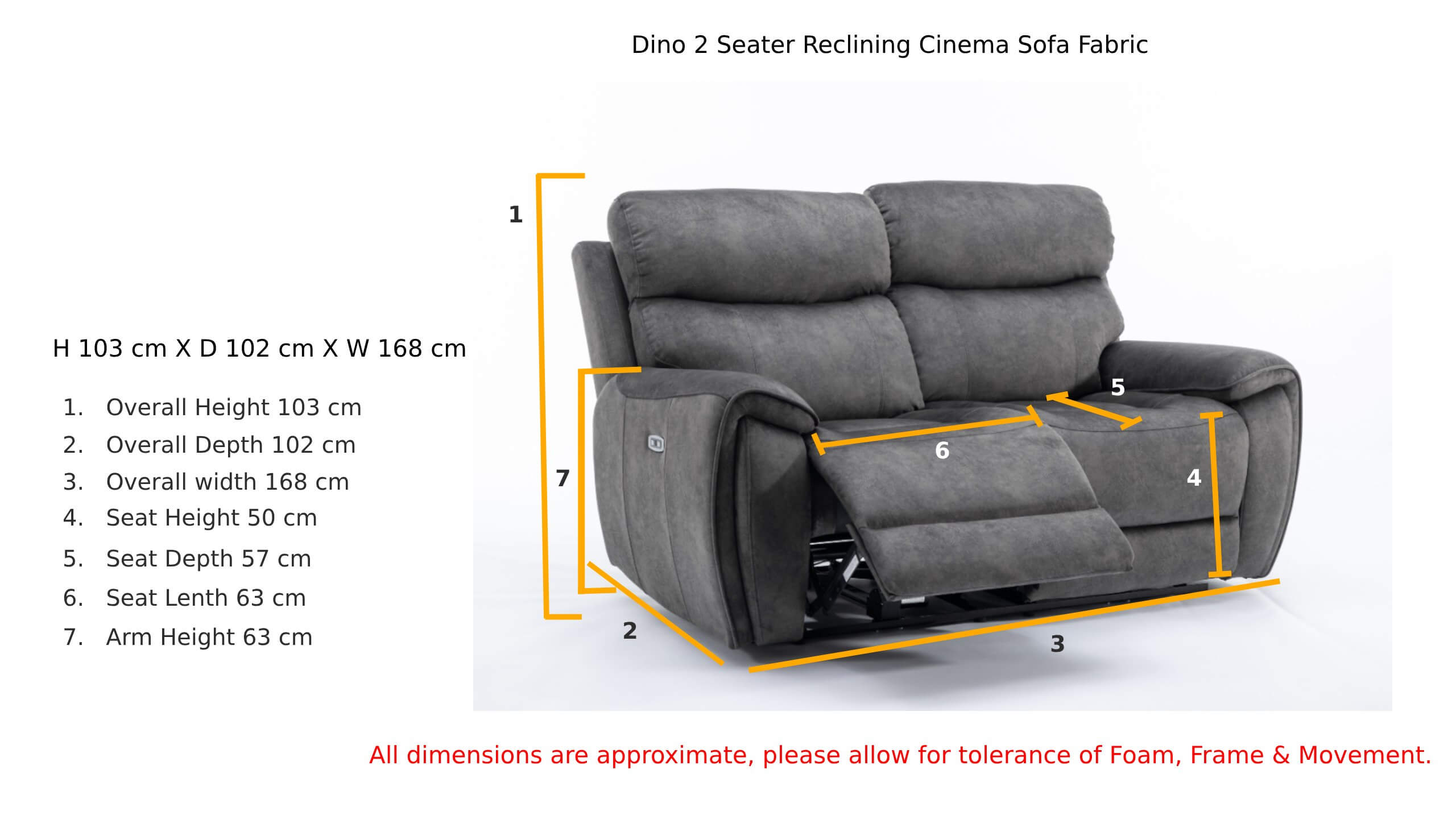 Whether you're limited by space or seeking a stylish addition to your home, the Dino 2 Seater Reclining Sofa is an excellent choice. For more information or assistance, contact us via live chat, call, email, or live video call.