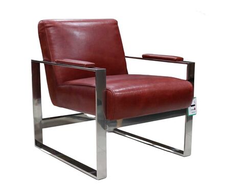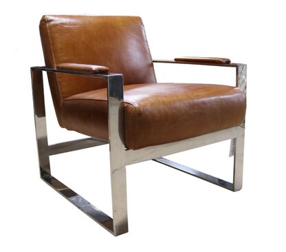 Art Deco Distressed Red Leather and Stainless Steel Armchair       Distressed Leather and Stainless Steel Tan Armchair