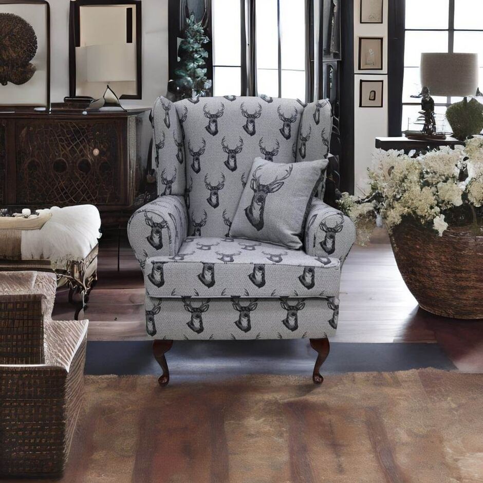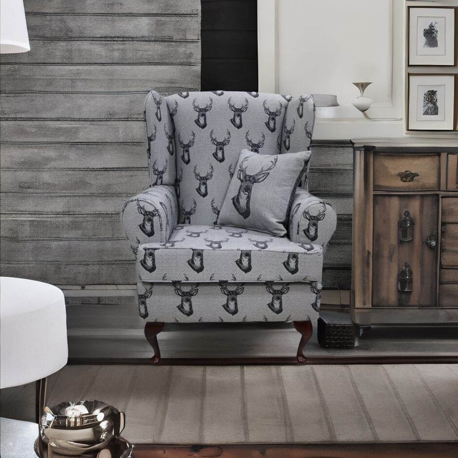 Emmet Orthopaedic Wing Chair Fireside High Back Armchair Antler Stag Charcoal Grey