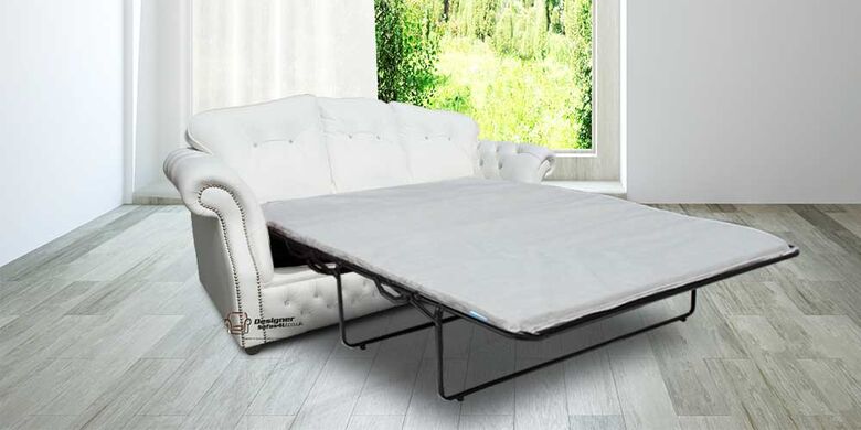 Era Crystal 3 Seater White Pull Out Sofa Bed Settee in Traditional Chesterfield Leather
