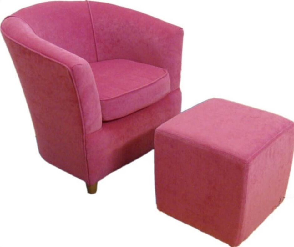 - Buy the Funky Pink Bucket Tub Chair Upholstered in Chenille Pink Fabric confidence. The Tub Sofa and Footrest is fully manufactured within the UK.