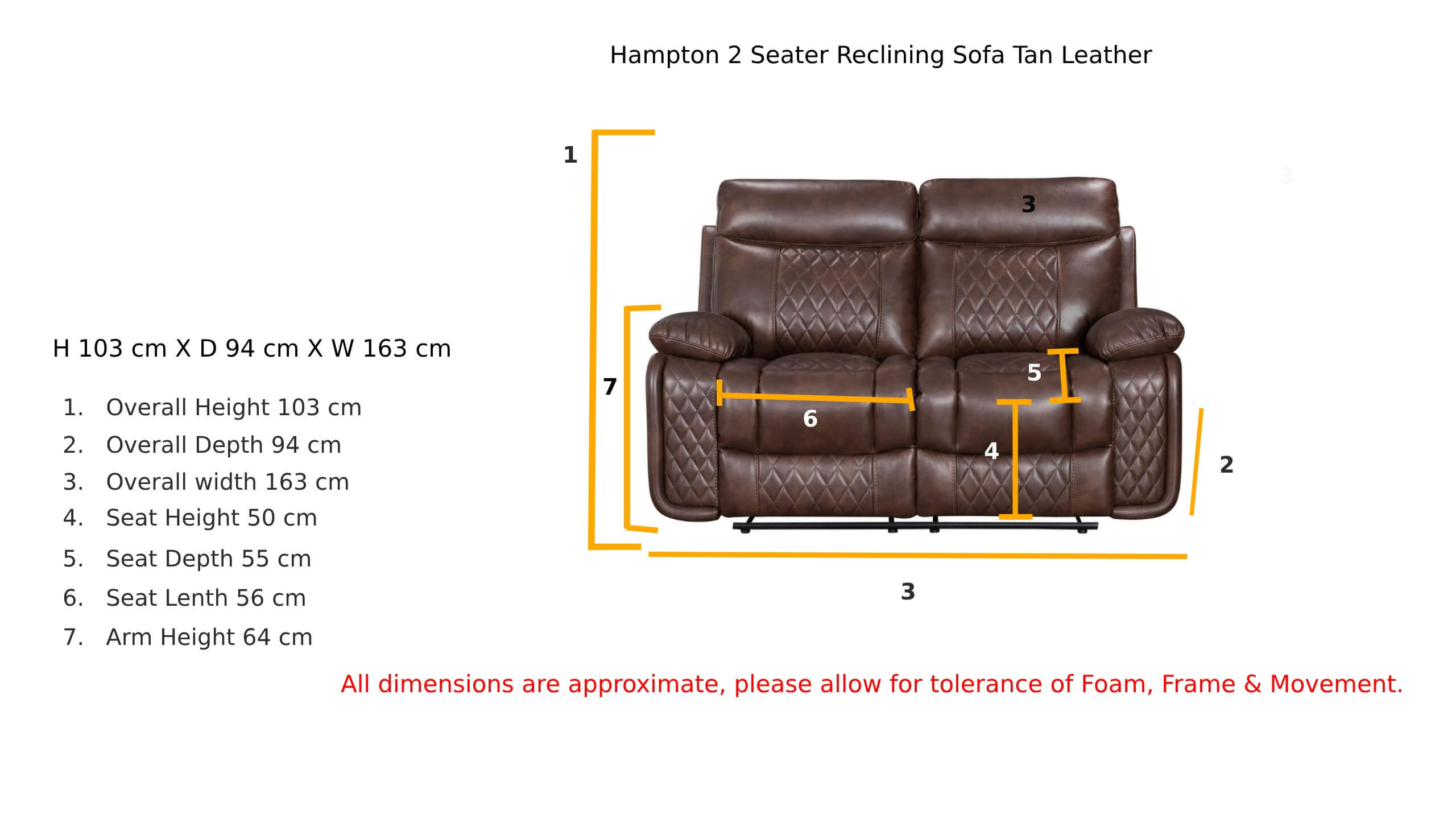 Hampton 2 Seater Reclining Sofa Tan Leather Aire