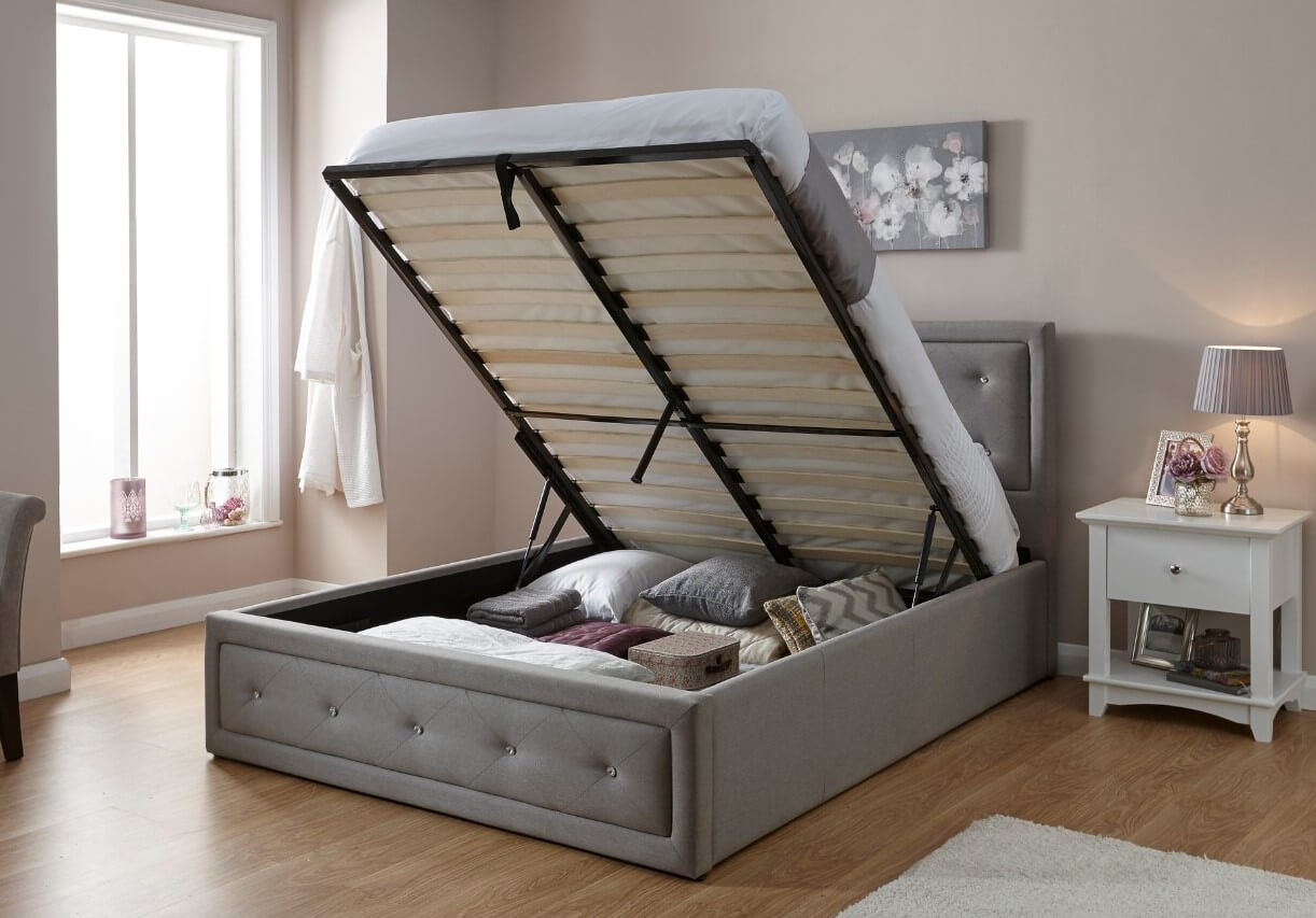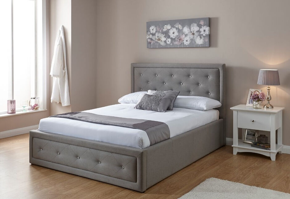 Utuh Double Storage Ottoman Bed Grey Fabric