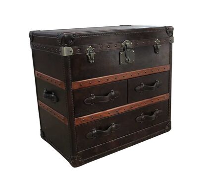 Large Tobacco Vintage Antique Leather Drawer Storage Trunk