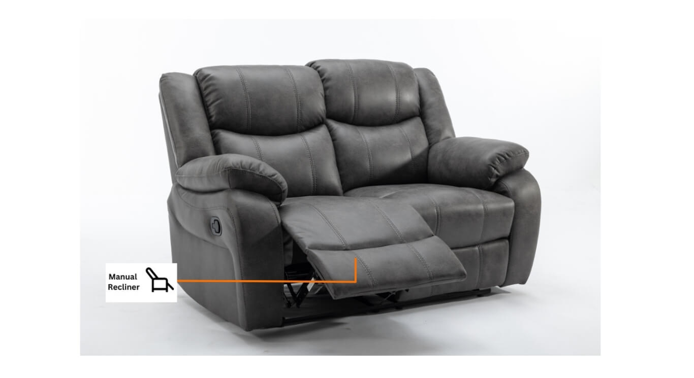 Monte 2 Seater Seater Reclining Sofa Grey Fabric