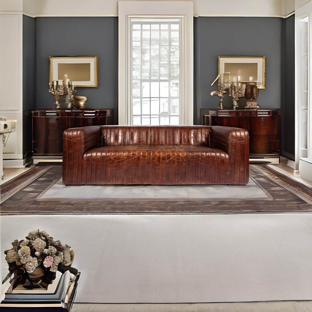 Hudson Vintage Retro 3 Seater Distressed Leather Settee Sofa